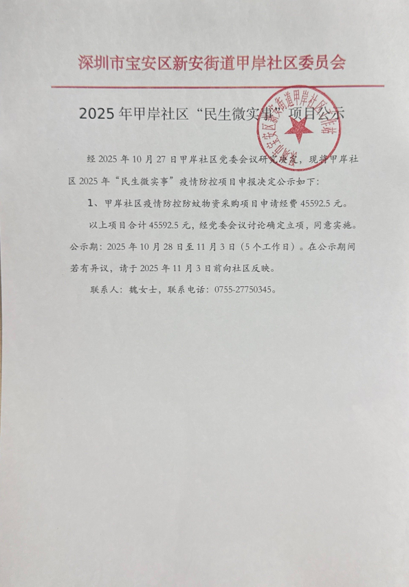 项目公示|宝安区新安街道甲岸社区2025年“民生微实事”项目公示