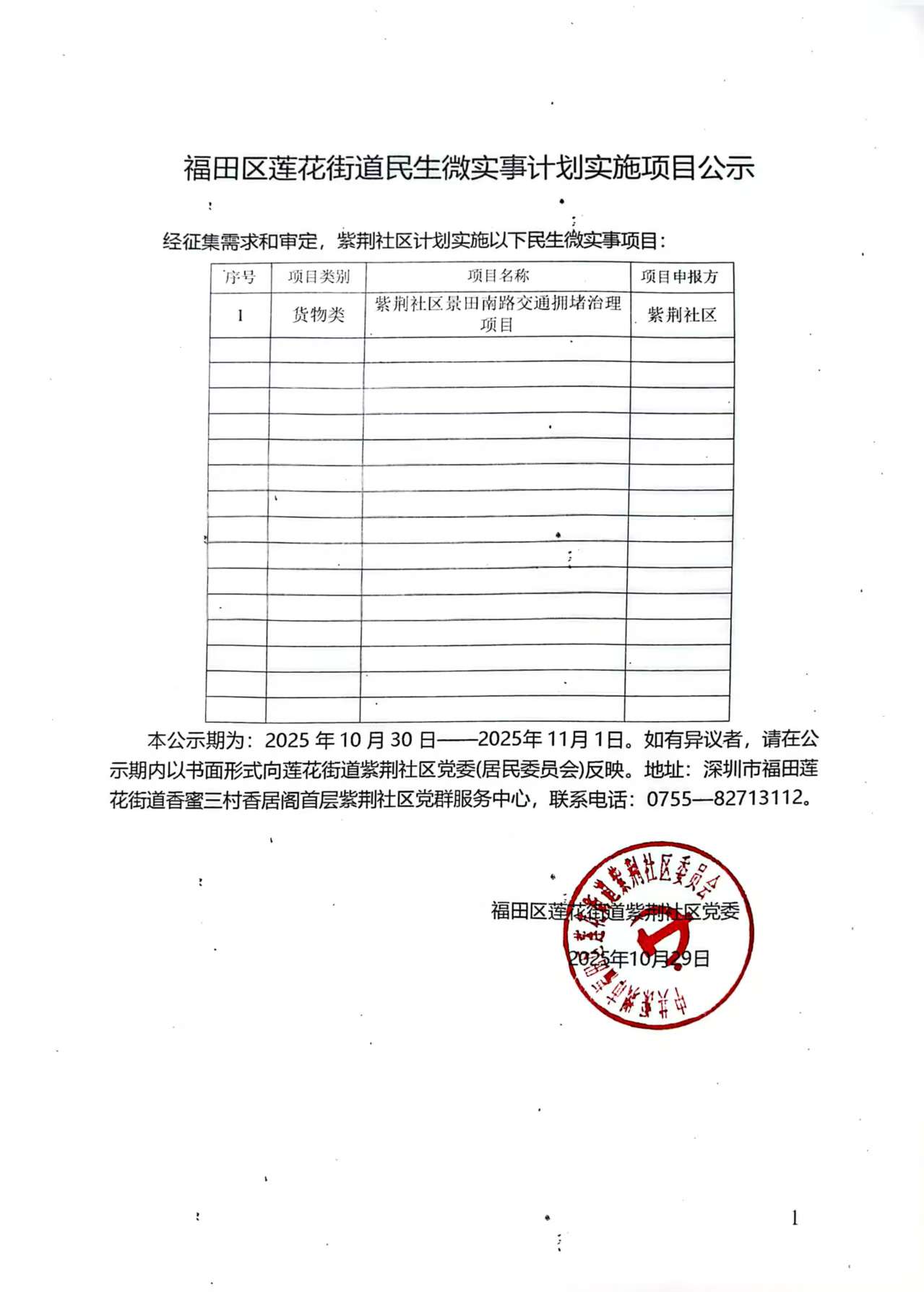 项目公示|福田区莲花街道紫荆社区景田南路交通拥堵治理项目“民生微实事”计划实施项目公示