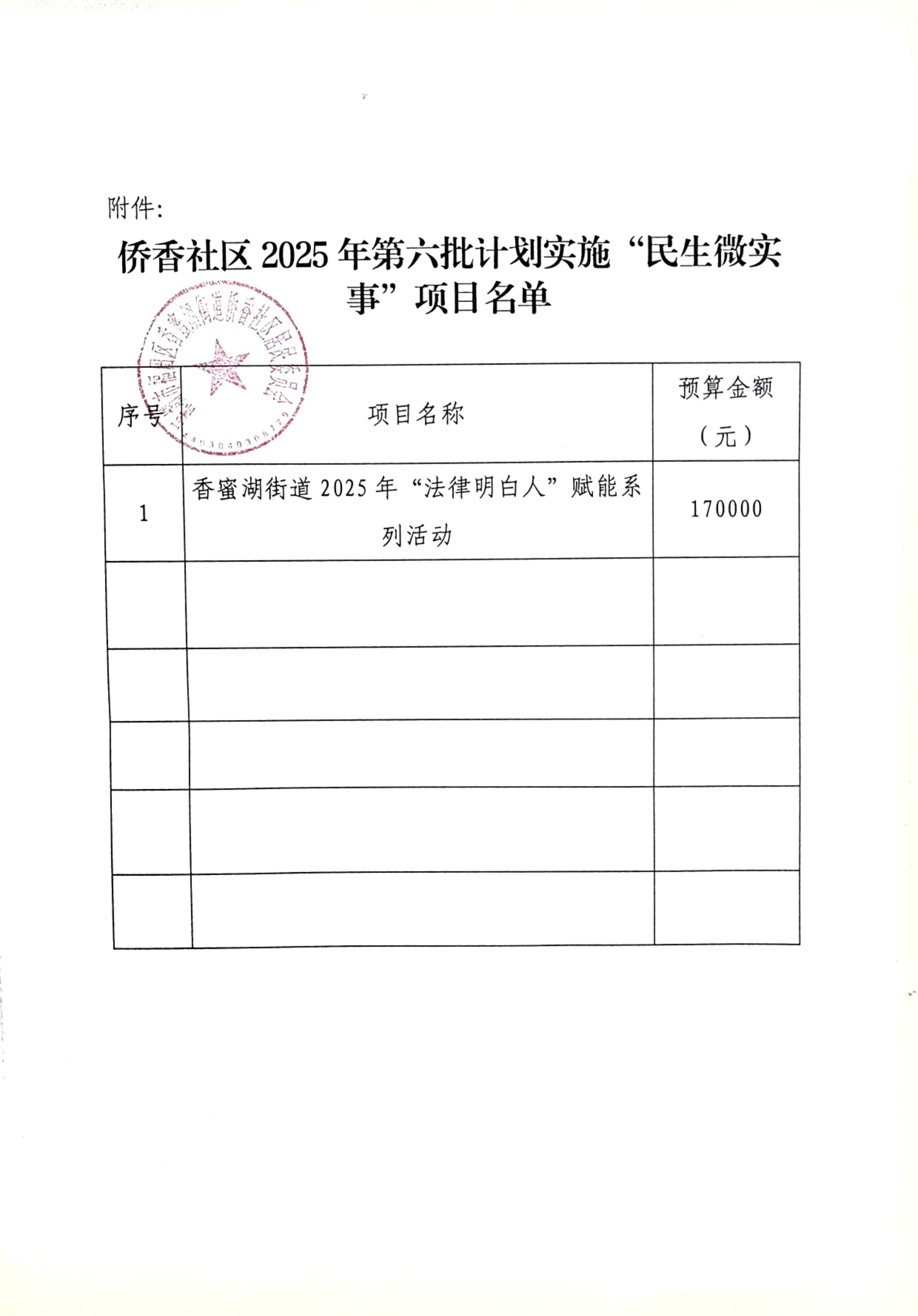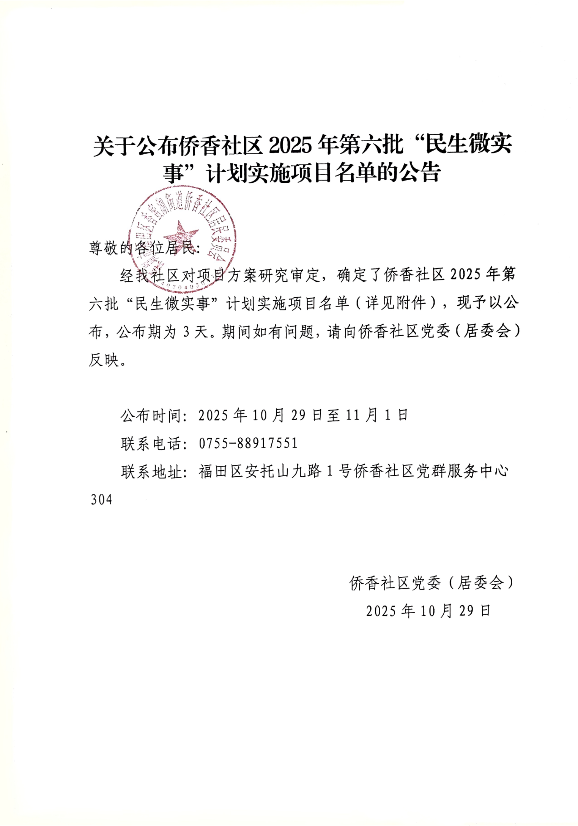 项目公示|福田区香蜜湖街道侨香社区2025年第六批“民生微实事”计划实施项目名单公告