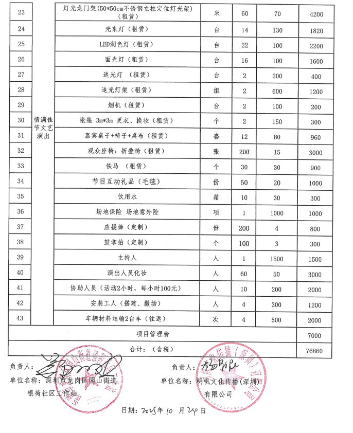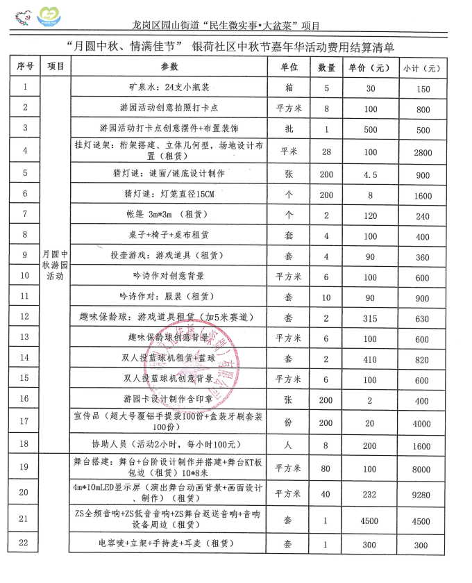 项目公示|龙岗区园山街道银荷社区2025年“月圆中秋、情满佳节”银荷社区中秋节嘉年华“民生微实事”项目财务结算公示