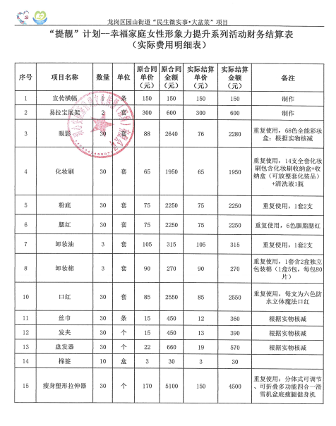 项目公示|龙岗区园山街道银荷社区2025年“提靓”计划--幸福家庭女性形象力提升系列活动“民生微实事”项目财务结算公示
