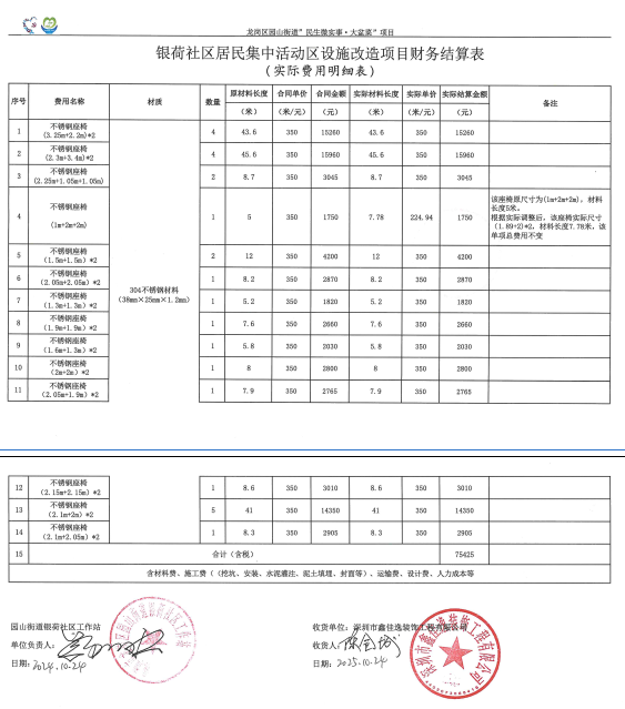 项目公示|龙岗区园山街道银荷社区2025年居民集中活动区设施改造项目“民生微实事”项目财务结算公示