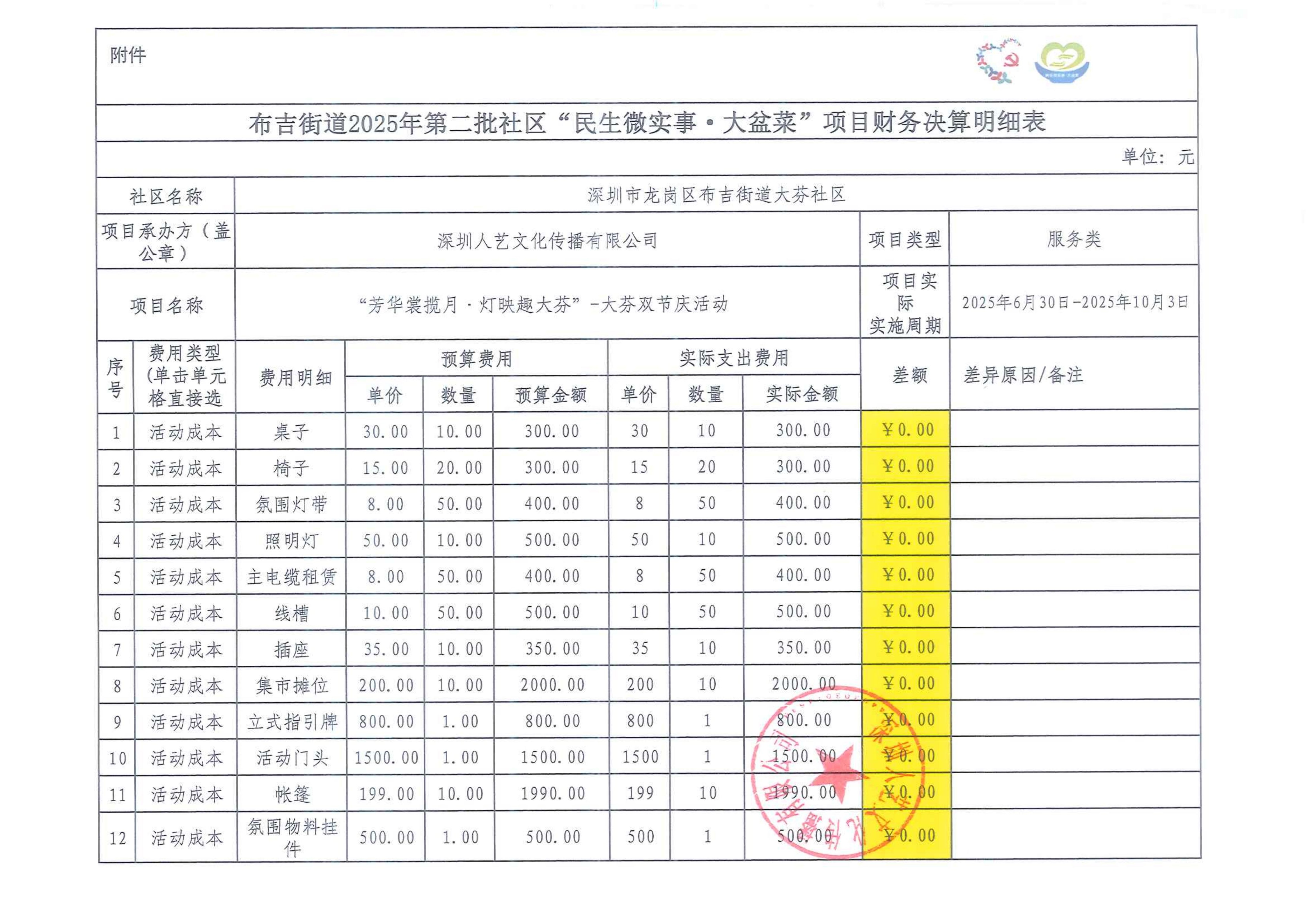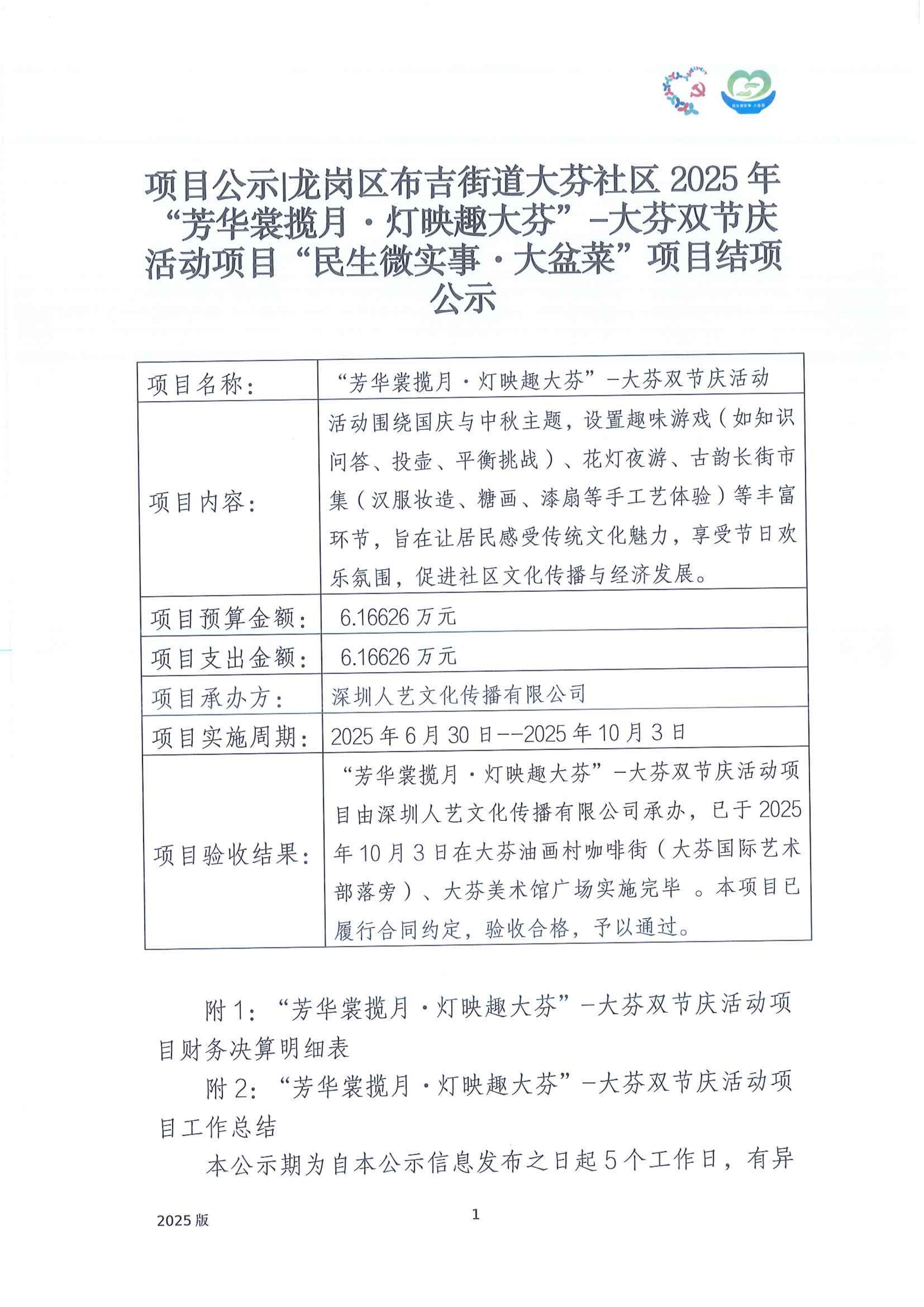 项目公示|龙岗区布吉街道大芬社区2025年“芳华裳揽月·灯映趣大芬”-大芬双节庆活动“民生微实事·大盆菜”项目结项公示