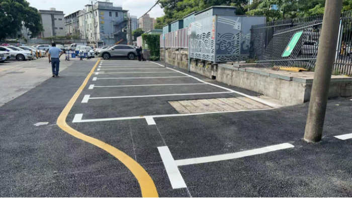 工程实施过程中,施工团队严格按照规划方案推进改造:对 500 平方米边角位水泥浇筑,及800 平方米停车位沥青铺设,重新划分 26个标准机动车位及 100个非机动车位。
