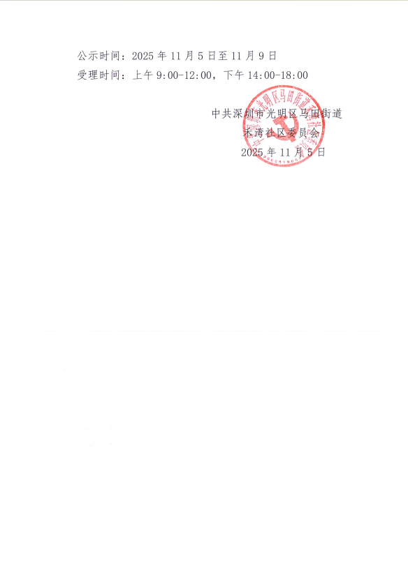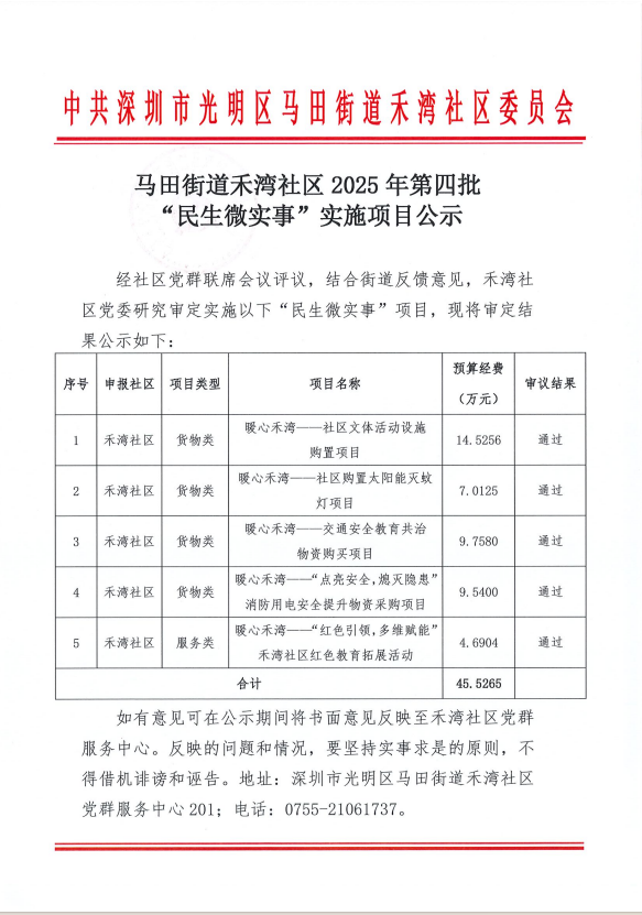 项目公示|光明区马田街道禾湾社区2025年第四批“民生微实事”实施项目公示