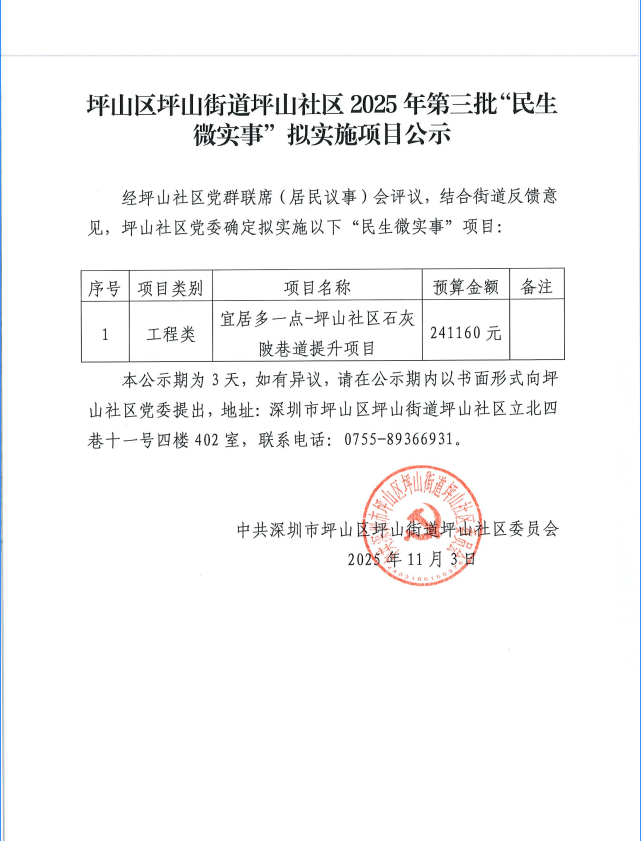 坪山区坪山街道坪山社区2025年第三批“民生微实事”项目拟实施项目公示.pdf