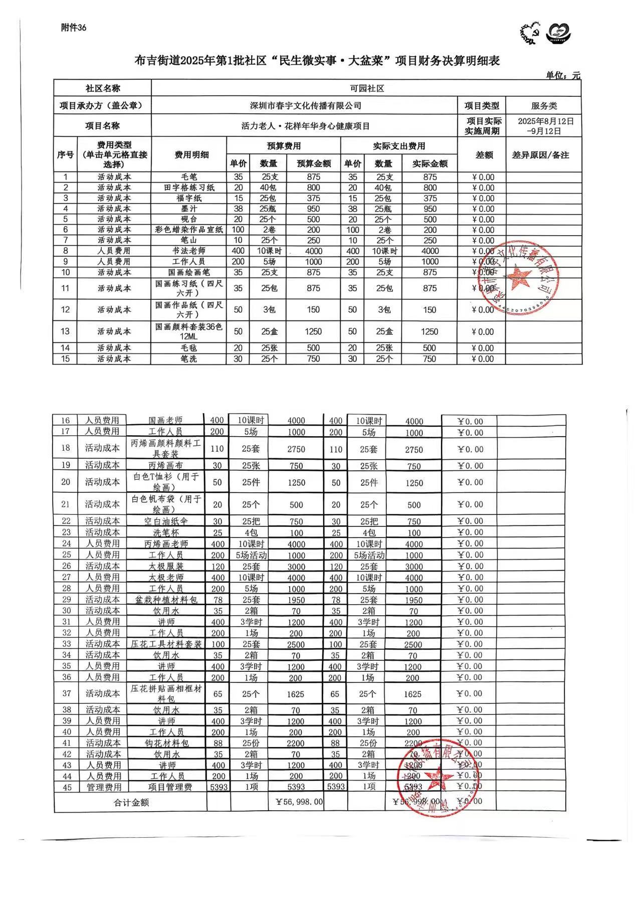 项目公示|龙岗区布吉街道可园社区2025年活力老人·花样年华身心健康项目“民生微实事·大盆菜”项目结项公示
