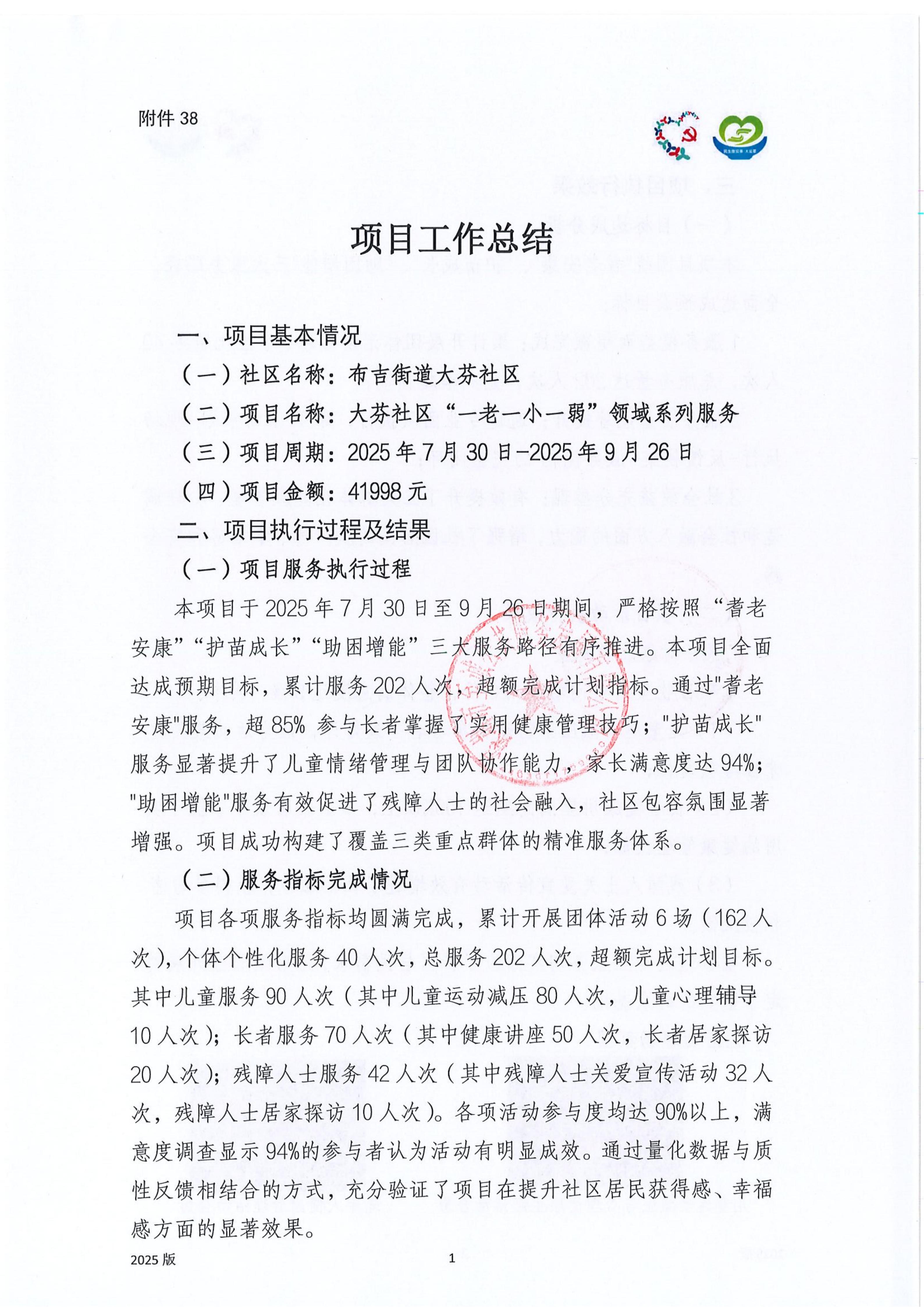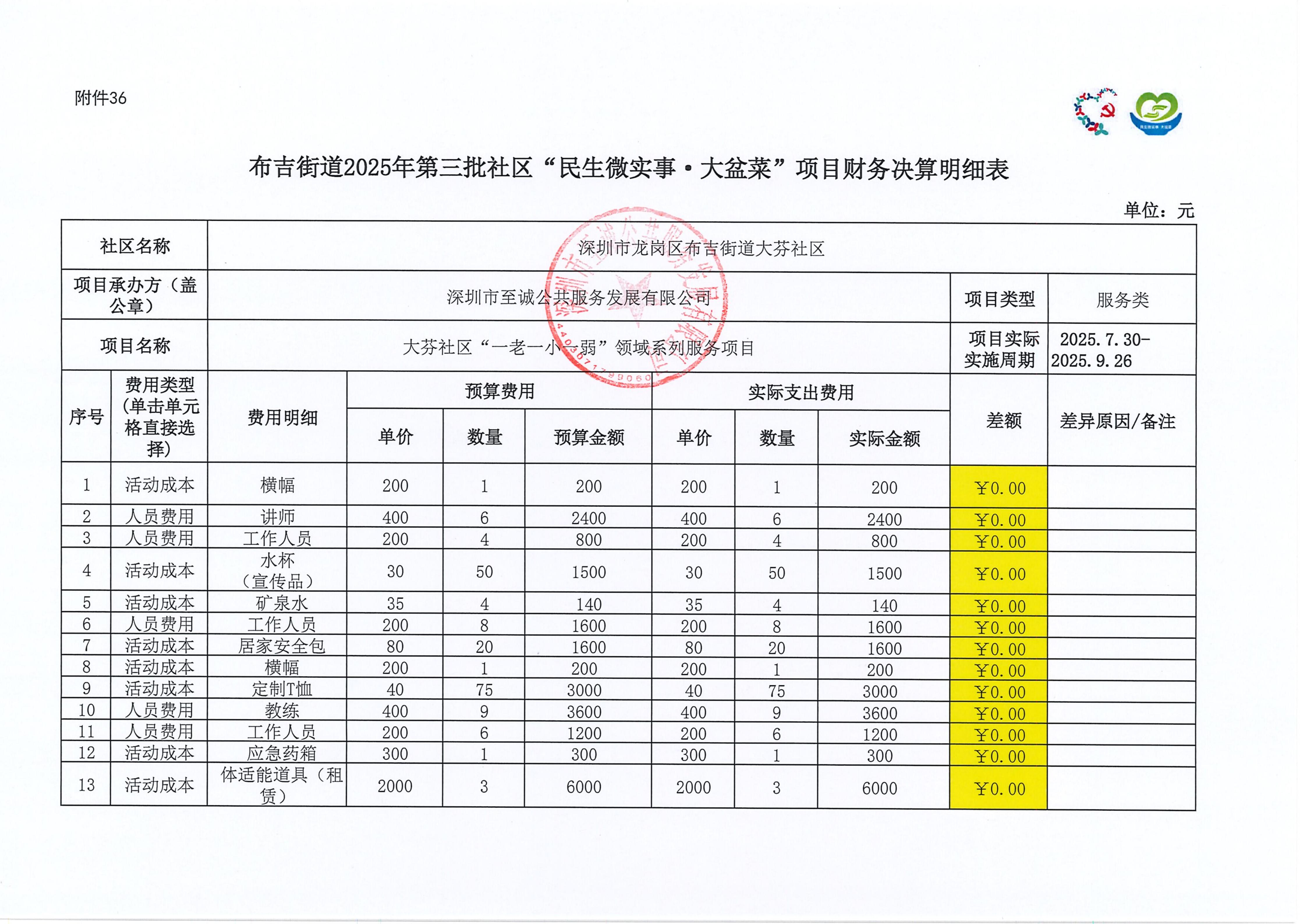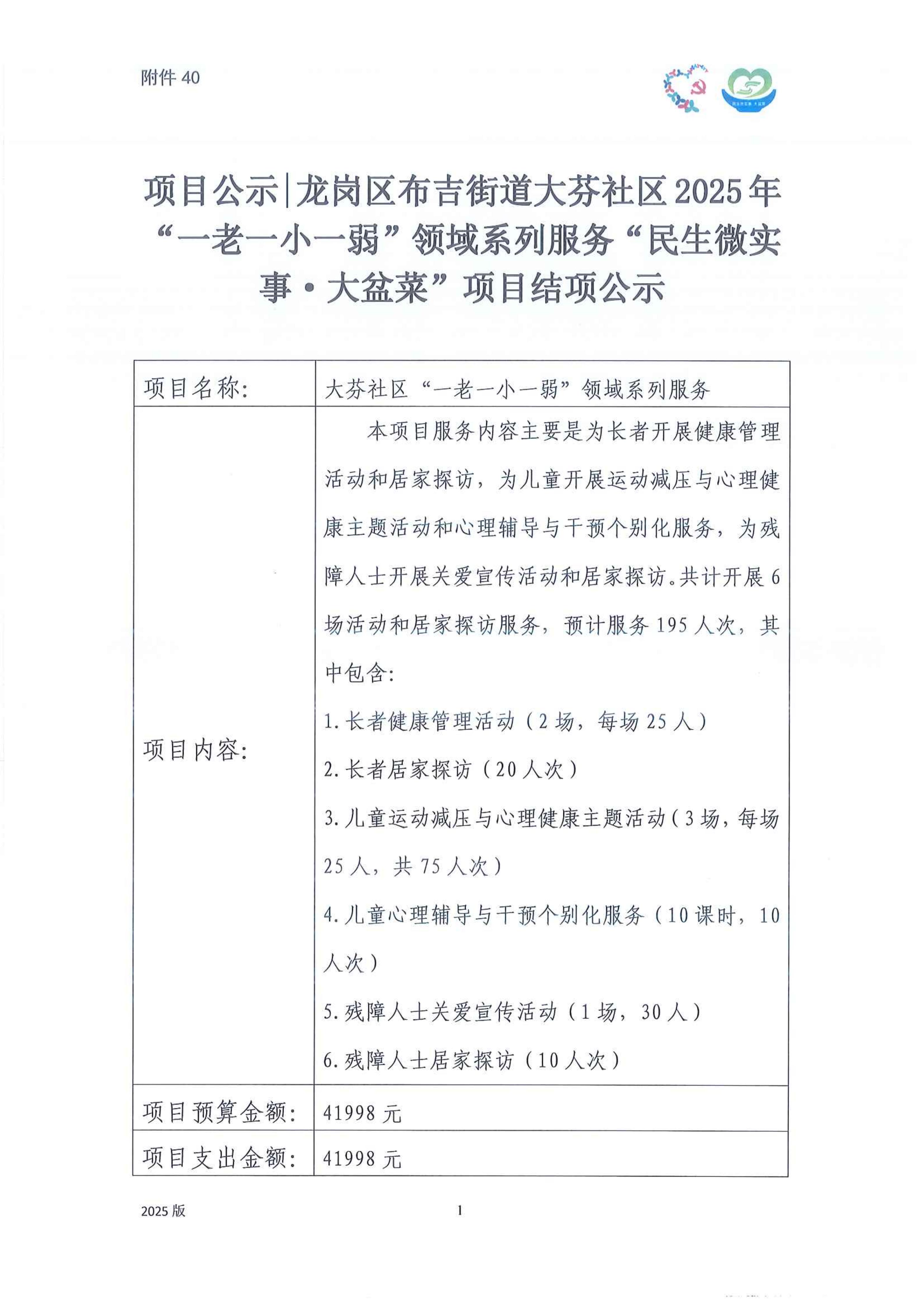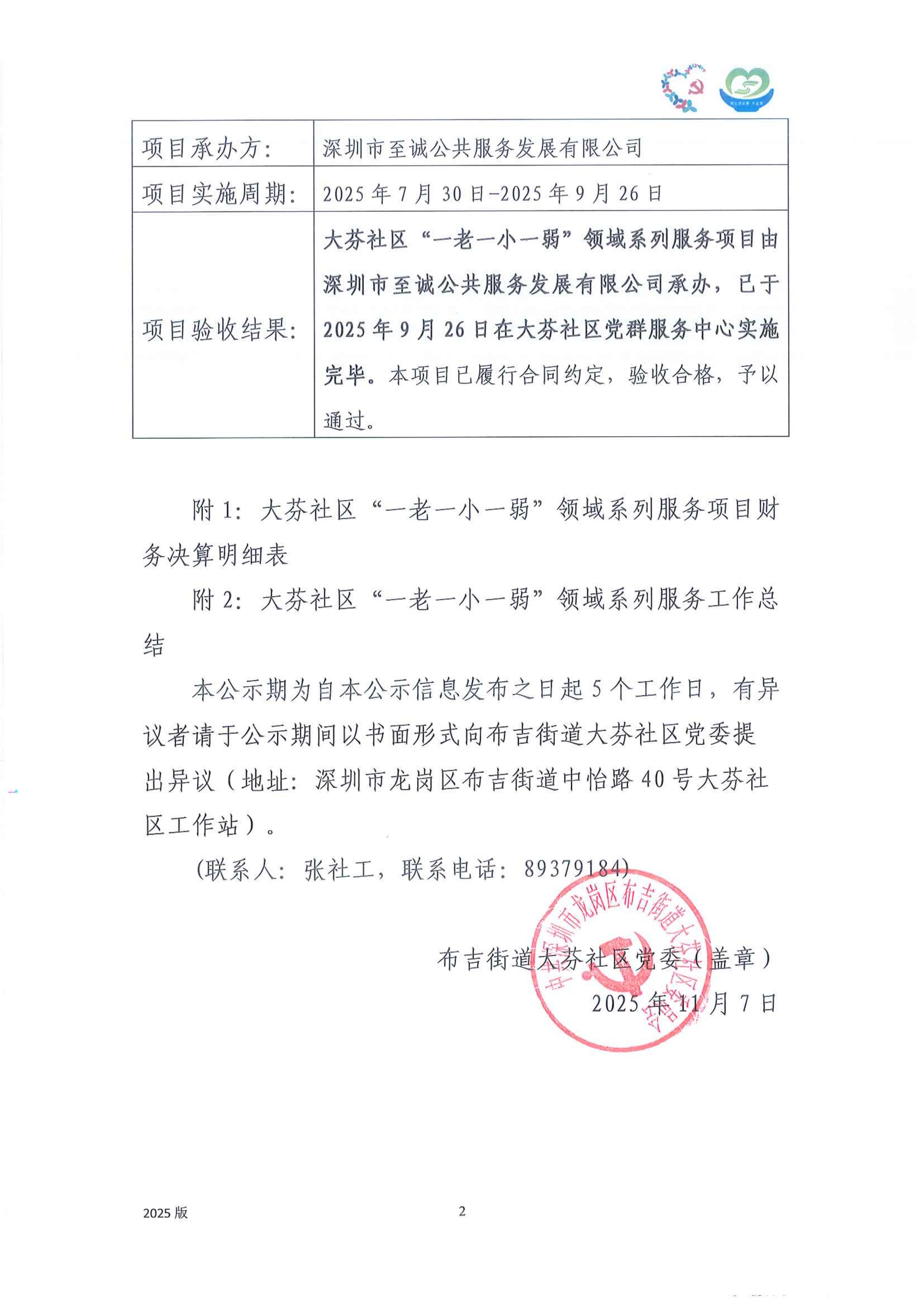 项目公示|龙岗区布吉街道大芬社区2025年“一老一小一弱”领域系列服务“民生微实事·大盆菜”项目结项公示