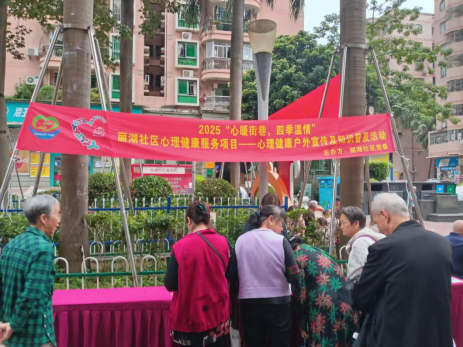 吉华街道丽湖社区在社区党委的统筹引领下,依托 “民生微实事·大盆菜” 惠民项目,组织开展“心暖街巷,四季温情”——丽湖社区心理健康服务项目之心理健康户外宣传及知识普及活动。