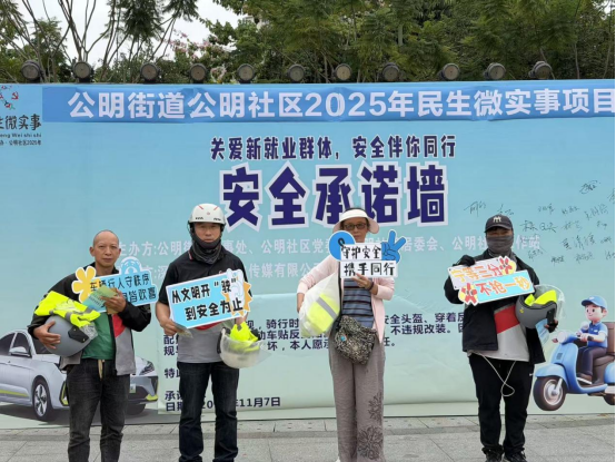 2025年11月7日下午,公明社区在哺心广场开展2025年民生微实事“关爱新就业群体,安全伴你同行”项目,吸引了近200名快递、外卖骑手等新就业形态劳动者热情参与。本次活动旨在精准回应新就业群体的实际需求,通过“宣教结合、物资保障”的方式,切实提升骑手们的交通安全意识与风险防范技能,将社区的关怀落到实处。