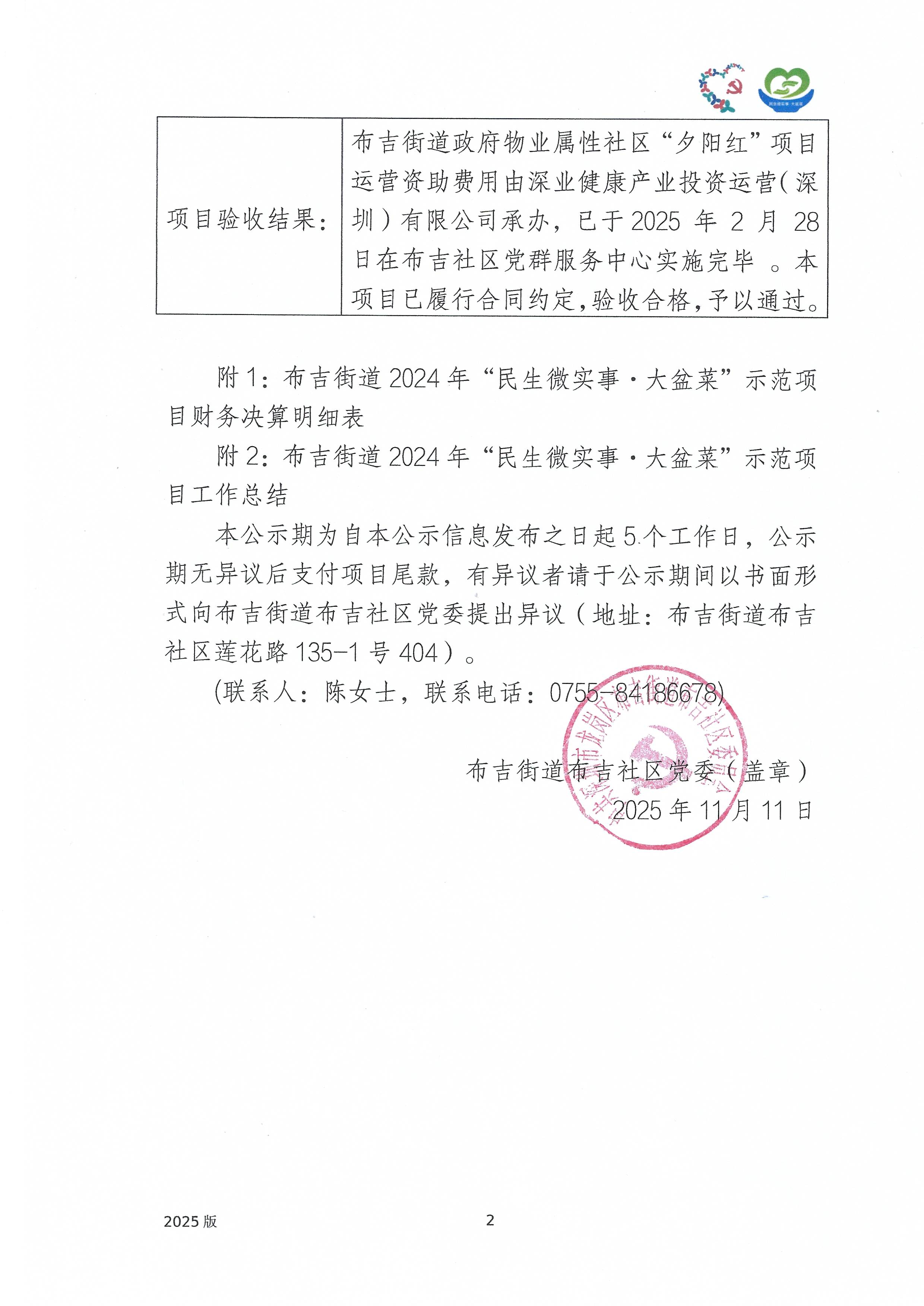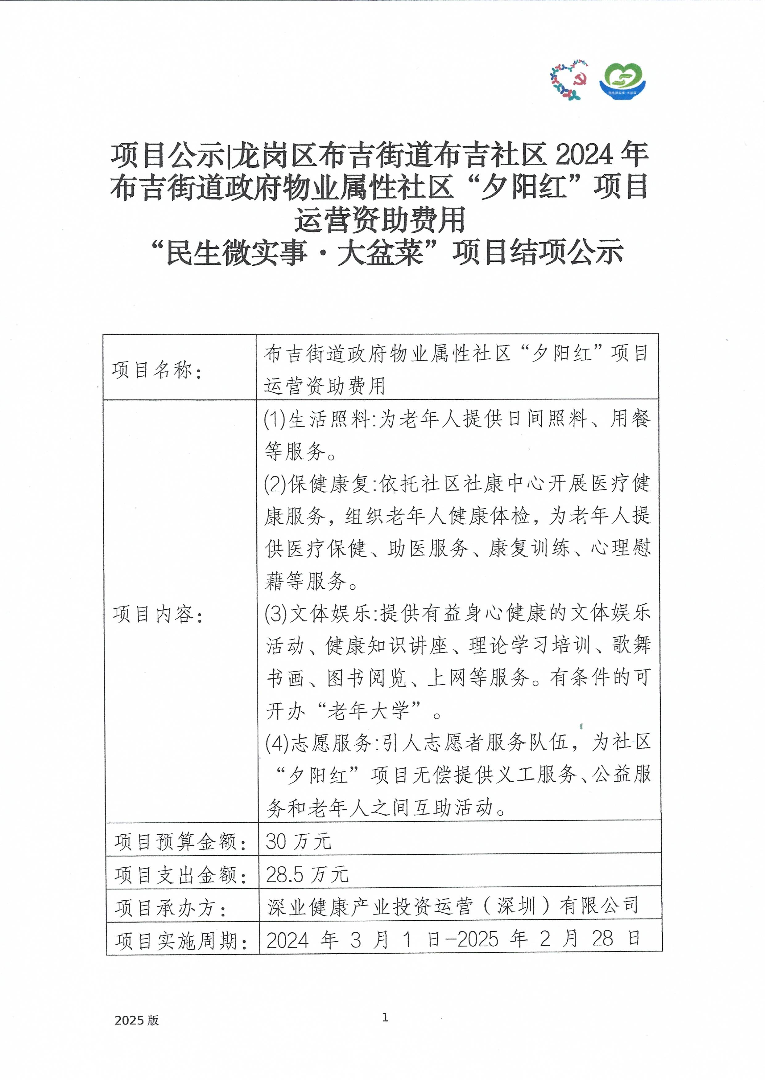 项目公示|龙岗区布吉街道布吉社区2024年布吉街道政府物业属性社区“夕阳红”项目运营资助费用“民生微实事·大盆菜”项目结项公示