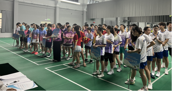 主持人在开幕式中简单的介绍了这两天的赛程和比赛规则。活动第一天为小组赛,共计100场比赛。赛场上,气氛热烈而紧张。参赛选手们全情投入,每一次挥拍都充满力量与激情,无论是雷霆万钧般的猛攻,还是如流水般细腻的防守,都展现了他们高超的球技和精湛的战术。轻盈的跃起、灵活的转身、精准的落点,每一个动作都凝聚着运动员们的汗水与努力,也赢得了现场观众的阵阵掌声和喝彩。最终“羽梦醉羽队”“羽林糕手队”“菜鸟来配对”“金格威科技队”成功入围半决赛。