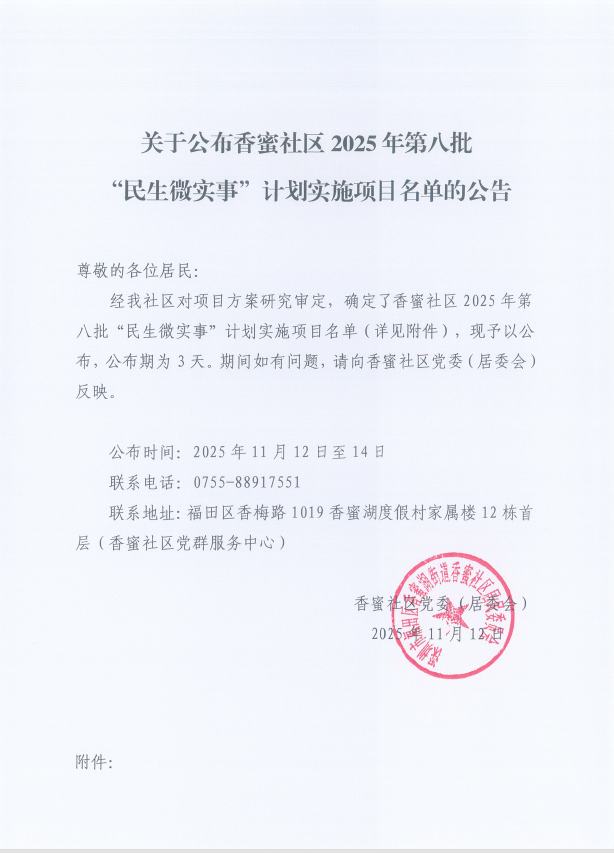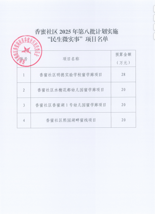 项目公示|福田区香蜜湖街道香蜜社区2025年第八批“民生微实事”计划实施项目名单的公告