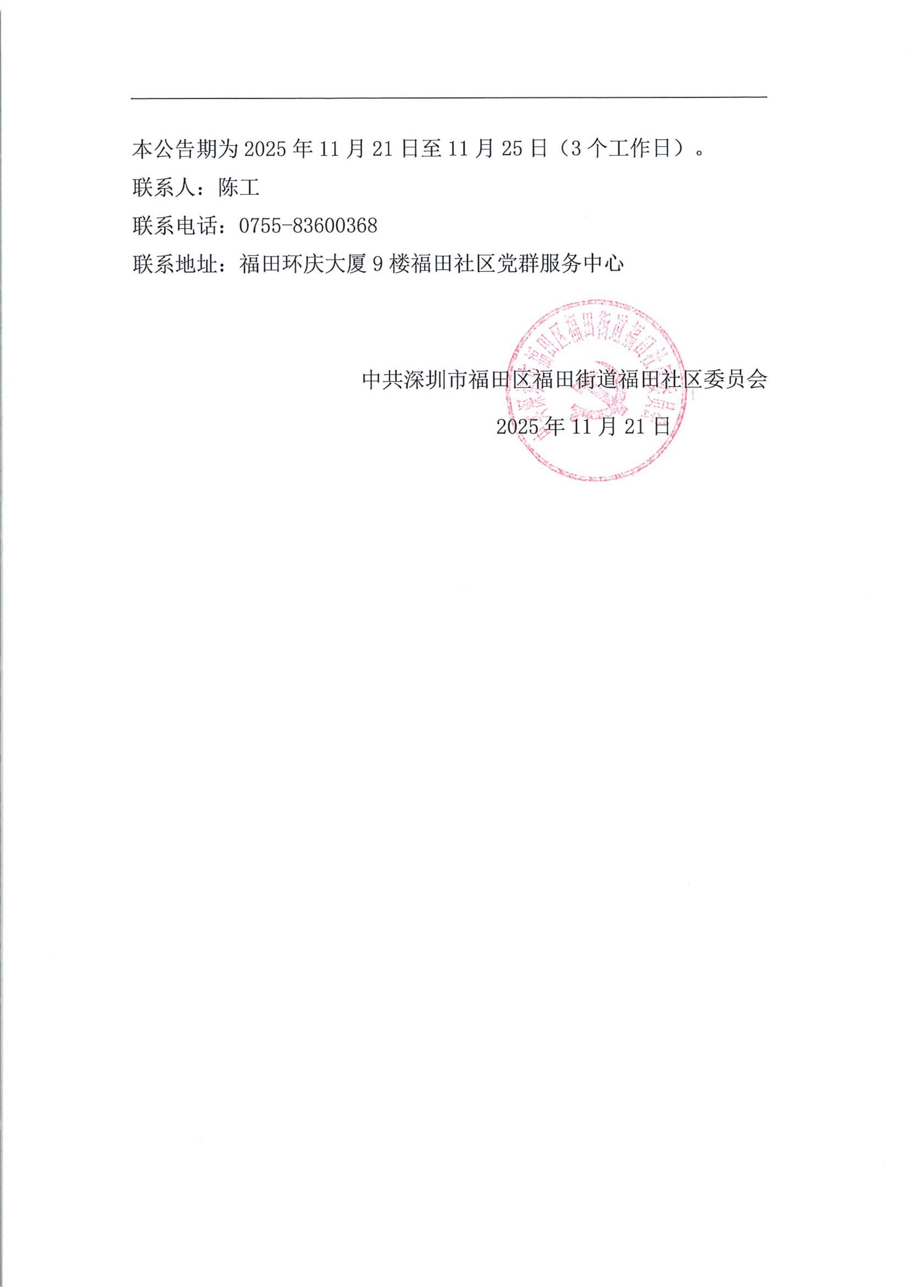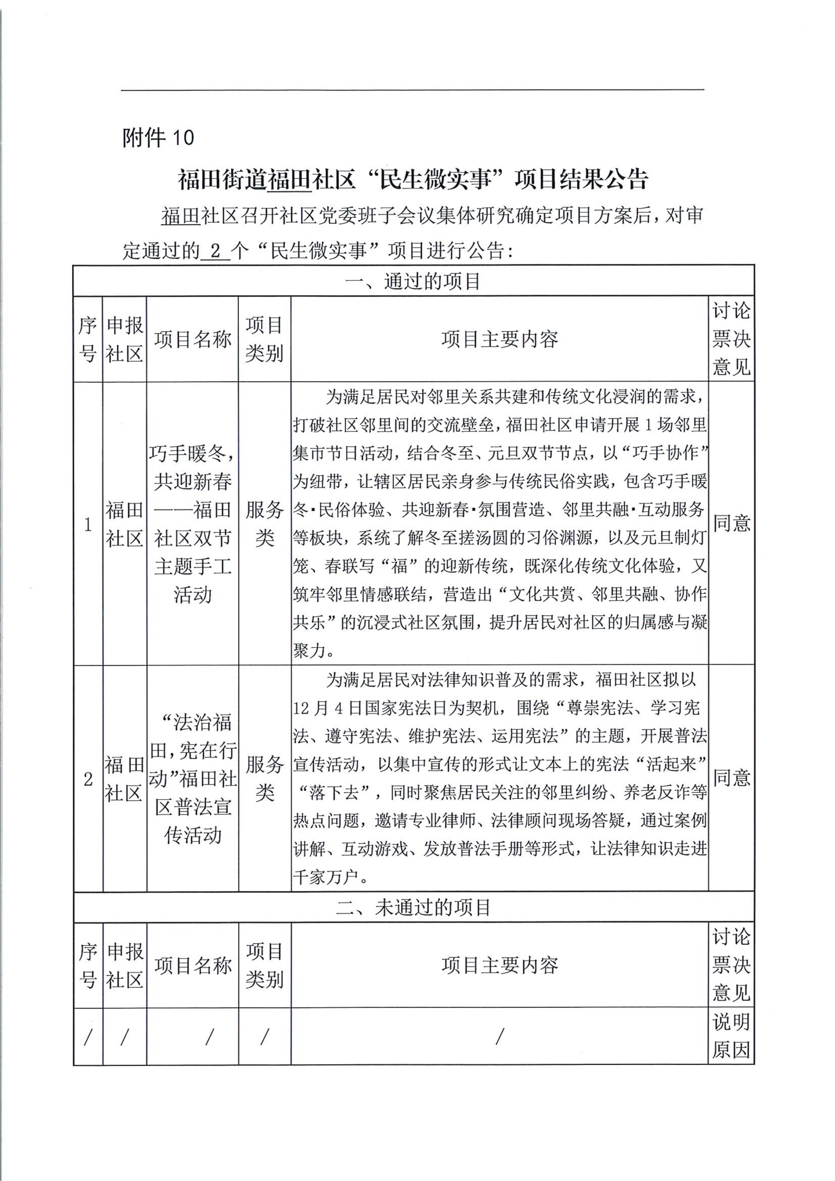项目公示|福田区福田街道福田社区2025年“民生微实事”项目结果公告