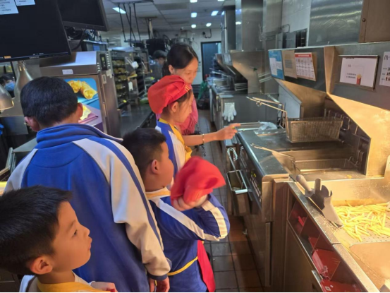 活动开始,餐厅员工作为指导老师,为孩子们讲解了基本的食品安全知识和厨房安全准则。在炸薯条环节,孩子们在员工指导下,学习了薯条从土豆到成品的转变过程。麦当劳员工向小厨师们介绍了薯条的制作工艺,从土豆的挑选、切割到油炸的温度和时间控制。
