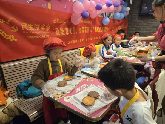 2025年11月21日,公明社区开展2025年民生微实事“凝聚家力量,协同育新人”家庭教育系列活动项目--“小小厨师”职业体验活动。20名社区小朋友在餐厅员工的指导下,亲手制作炸薯条和汉堡包,学习食品安全知识,体验劳动乐趣。