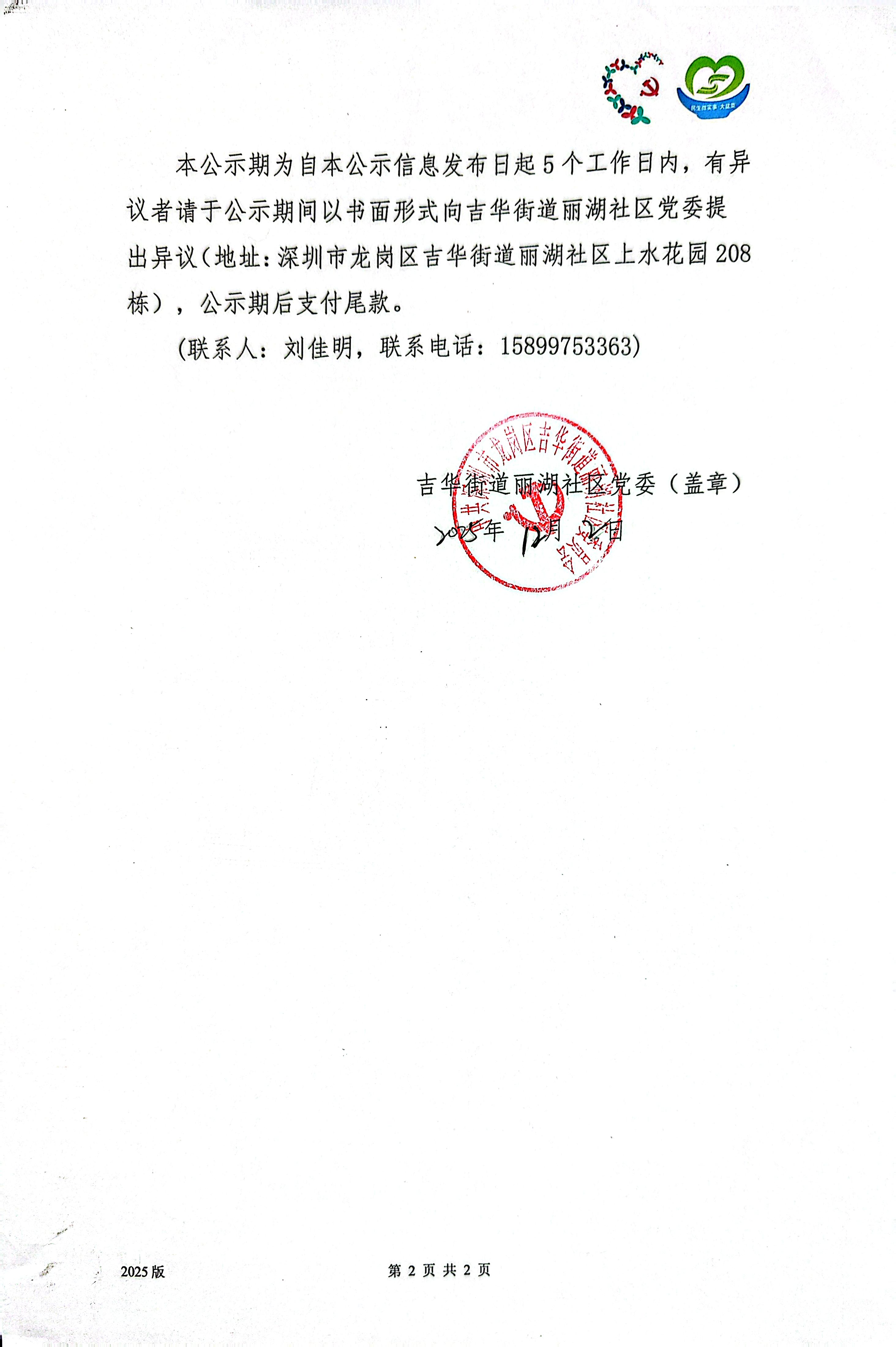 项目公示|龙岗区吉华街道丽湖社区2025年第一批“月满情浓,饼香暖邻”——丽湖社区中秋邻里情“民生微实事·大盆菜”项目结项公示