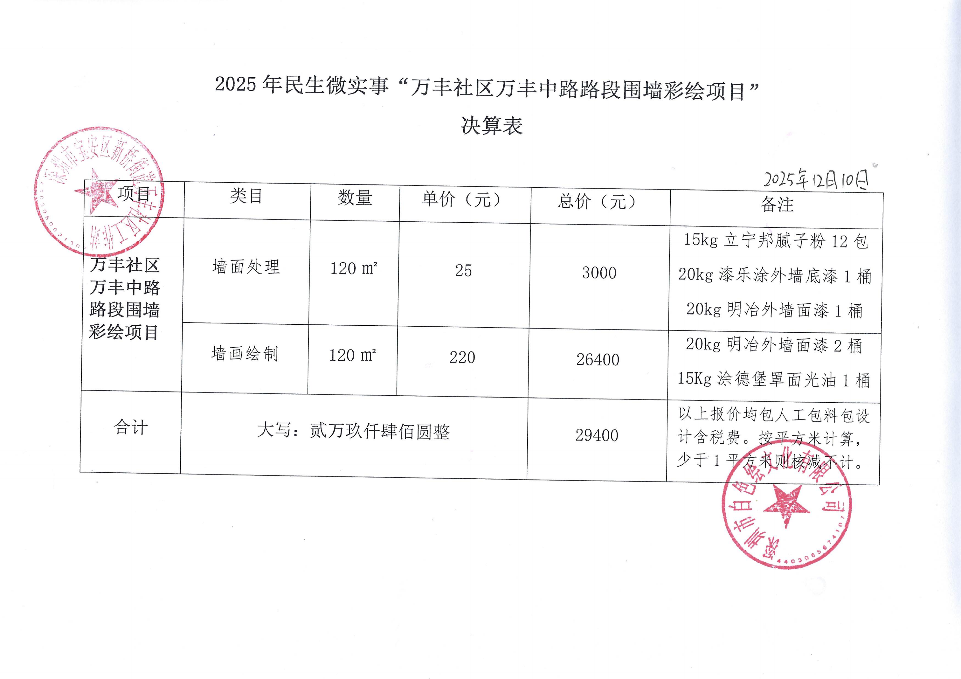 项目公示|宝安区新桥街道万丰社区2025年万丰中路路段围墙彩绘项目“民生微实事”项目决算表公示