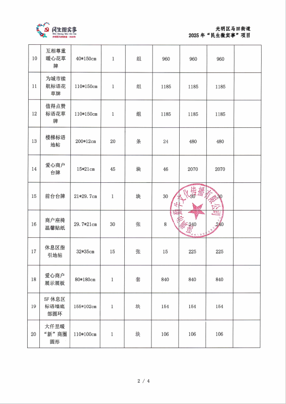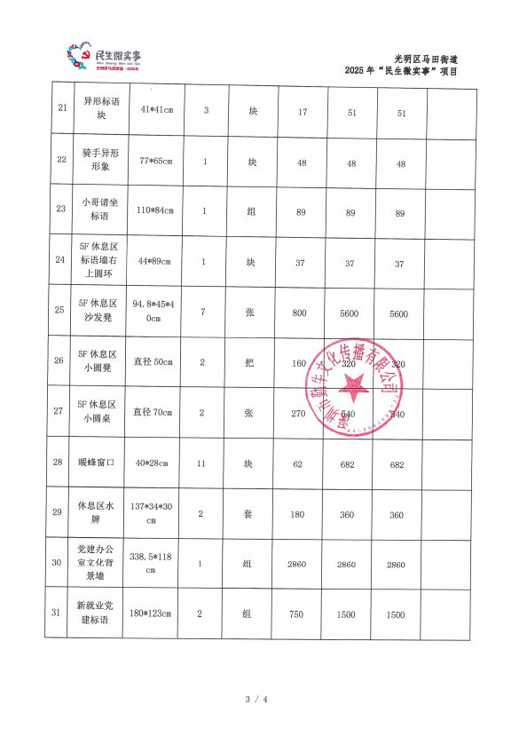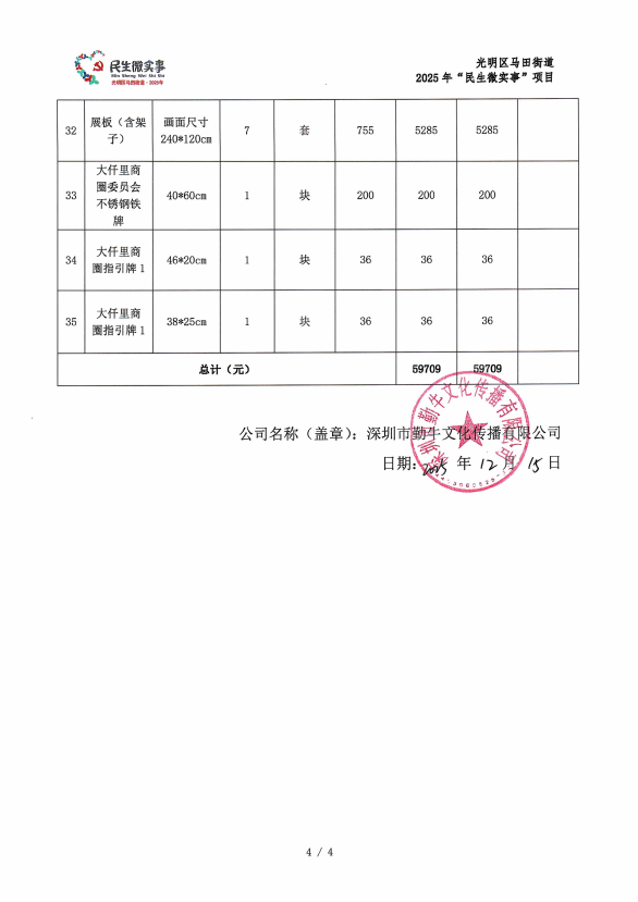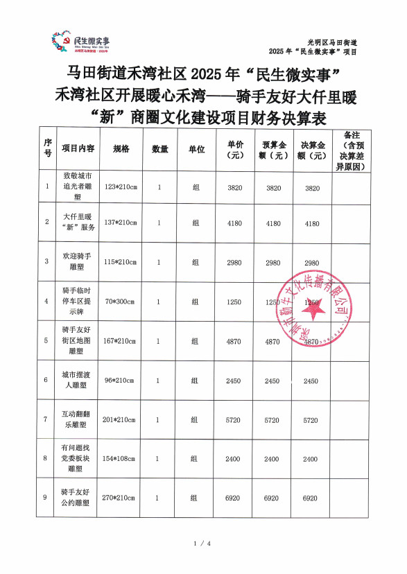 项目公示|光明区马田街道禾湾社区2025年“民生微实事”禾湾社区开展暖心禾湾——骑手友好大仟里暖“新”商圈文化建设项目财务决算表