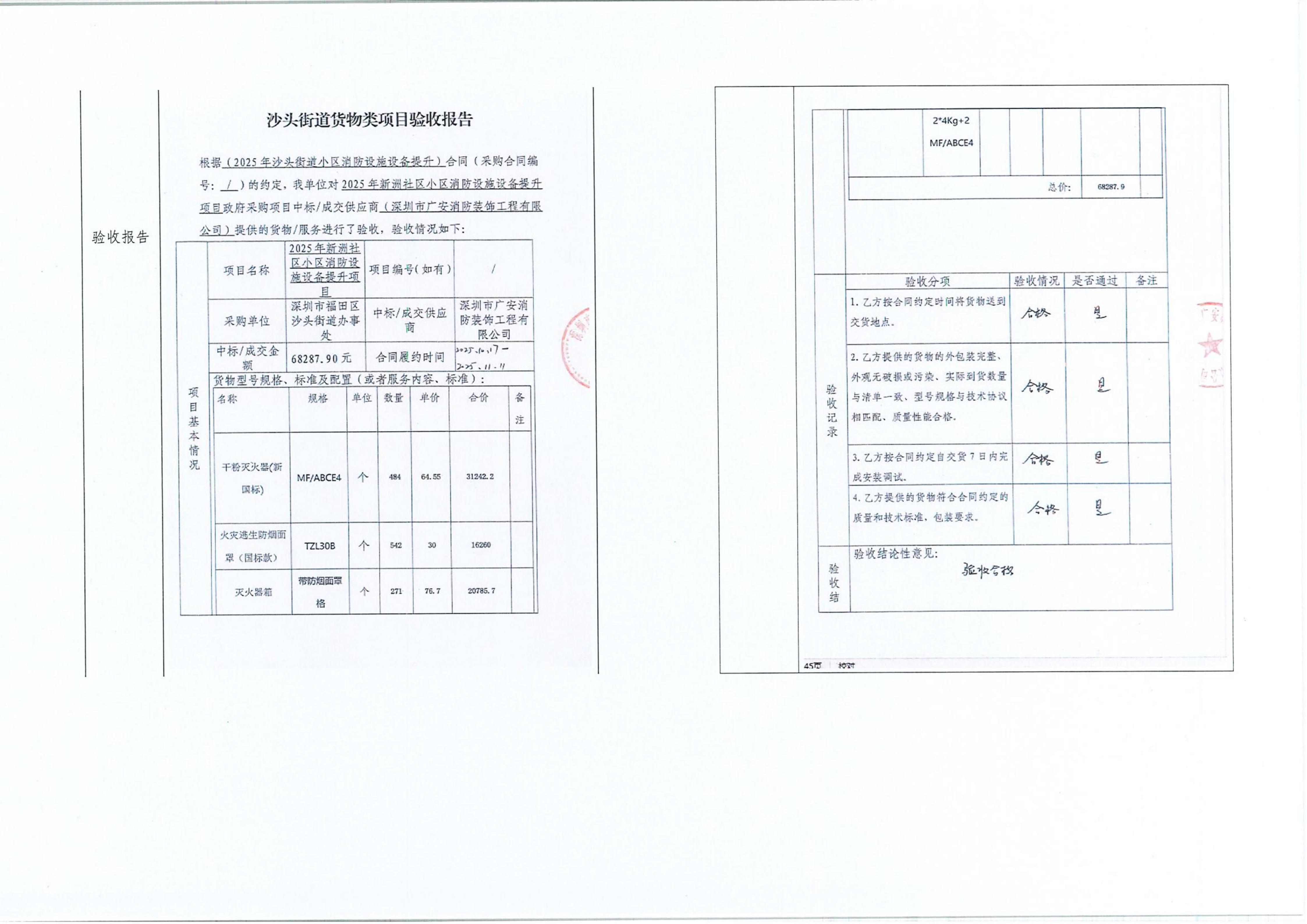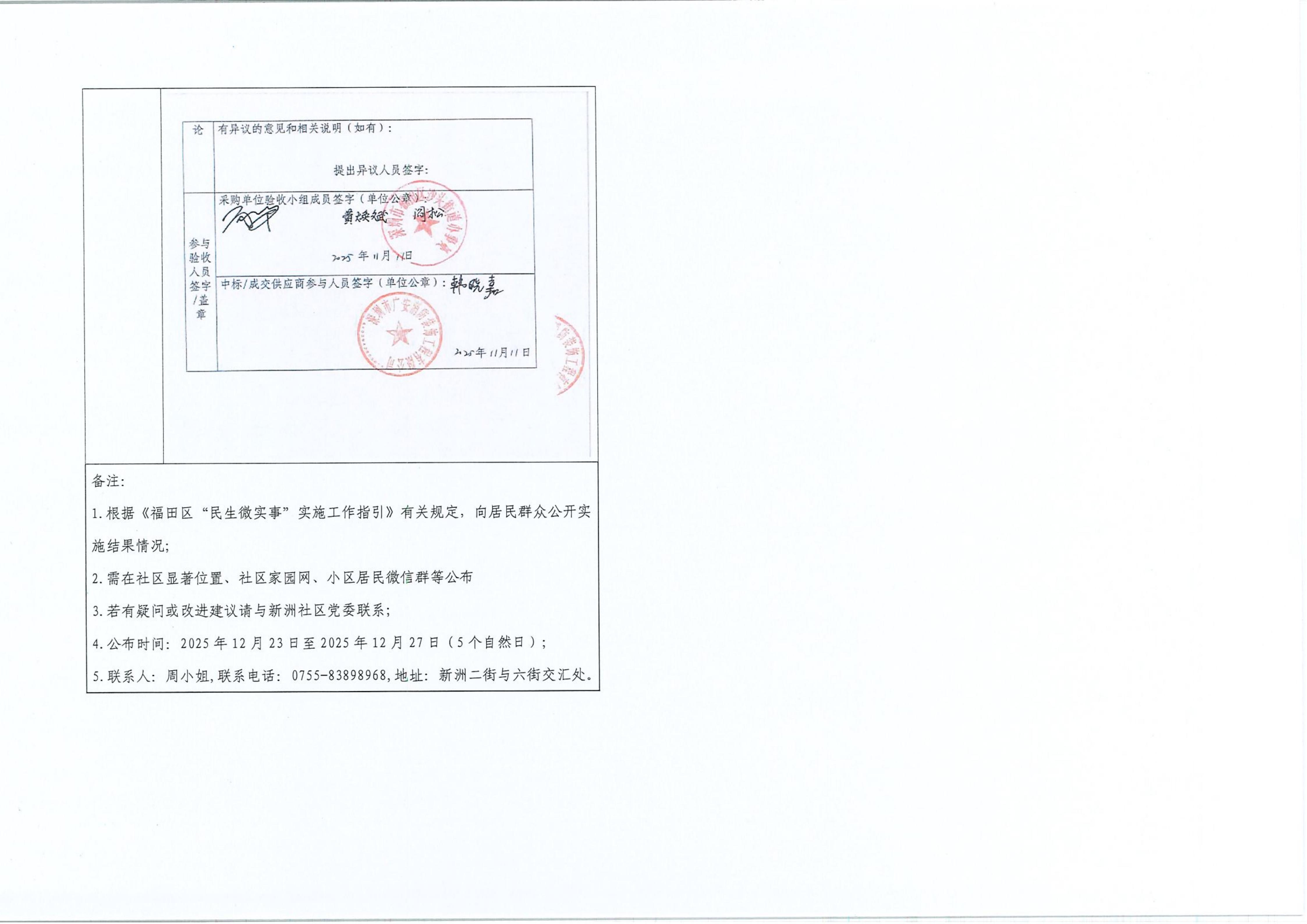 项目公示|福田区沙头街道新洲社区2025年新洲社区小区消防设施设备提升项目“民生微实事”项目实施结果公开及验收报告公示