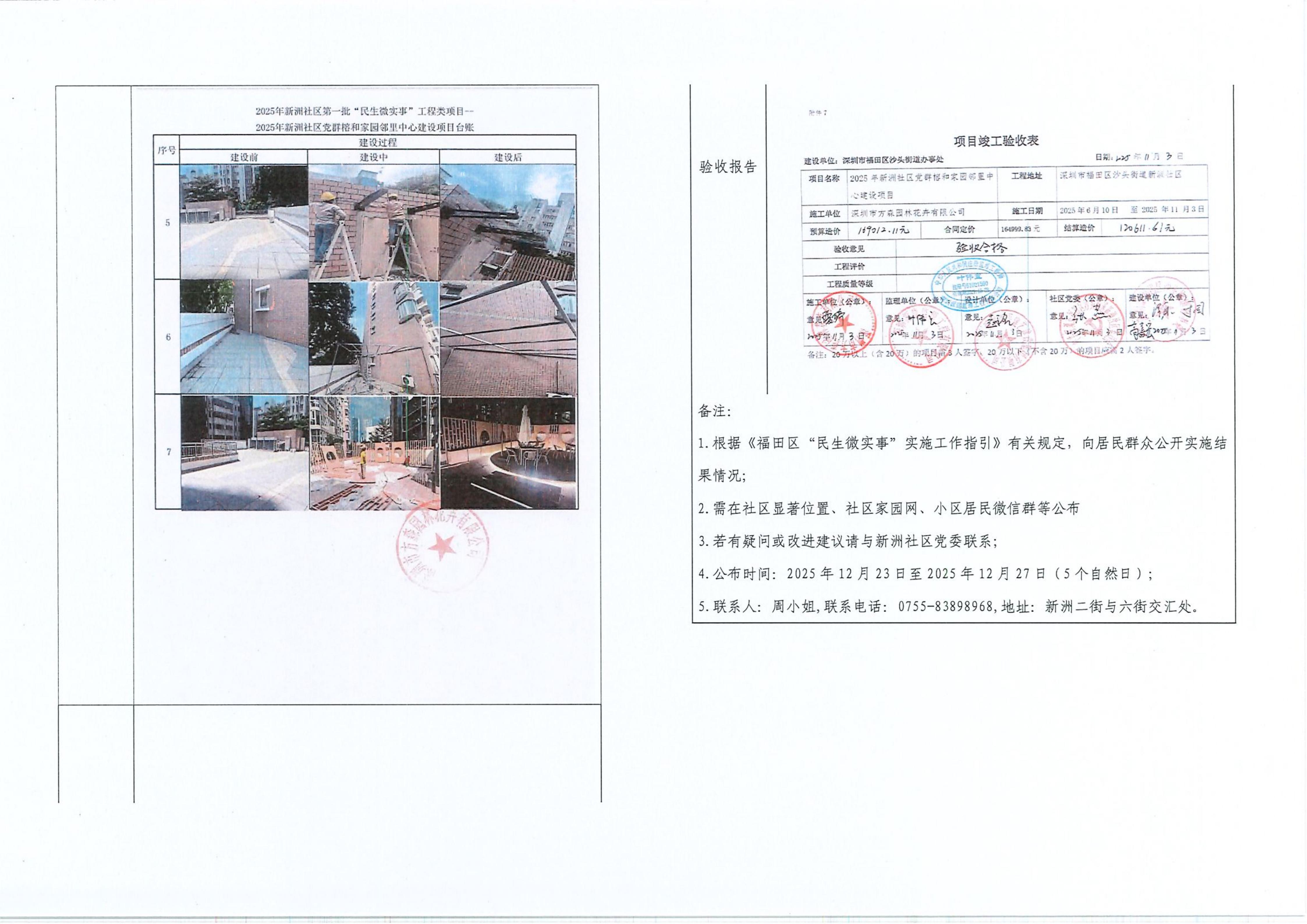 项目公示|福田区沙头街道新洲社区2025年新洲党群榕和家园邻里中心建设项目“民生微实事”项目实施结果公开及验收报告公示