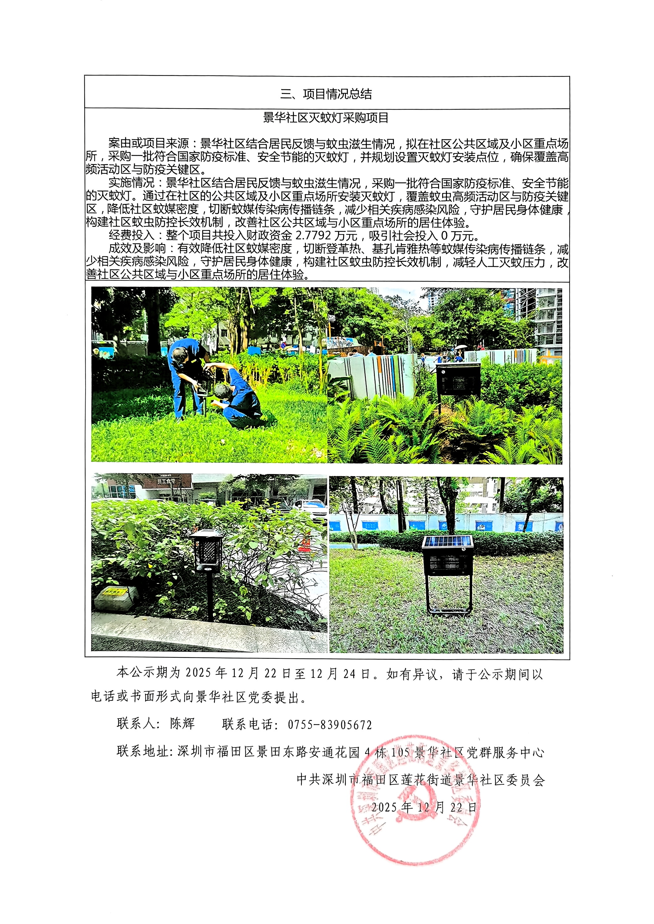 项目公示|福田区莲花街道景华社区2025年“民生微实事”项目结案报告公示