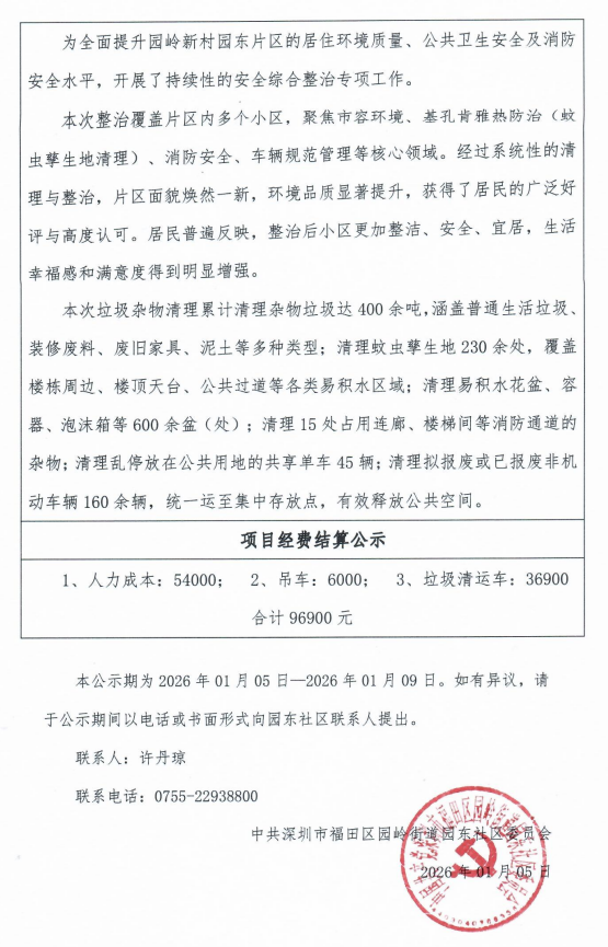 项目公示|福田区园岭街道园东社区园岭新村老旧小区楼宇全域清运“民生微实事”项目实施结果公示