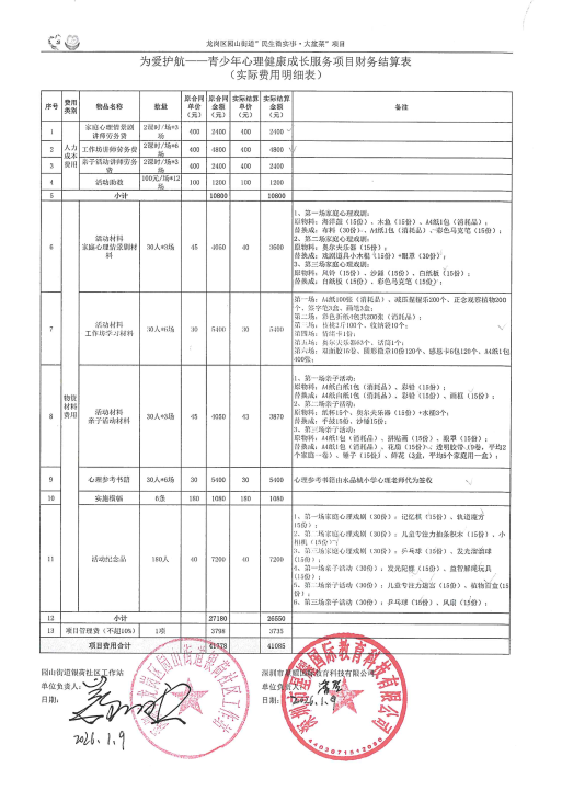 项目公示|龙岗区园山街道银荷社区2025年为爱护航--青少年心理健康成长服务“民生微实事”项目财务结算表公示