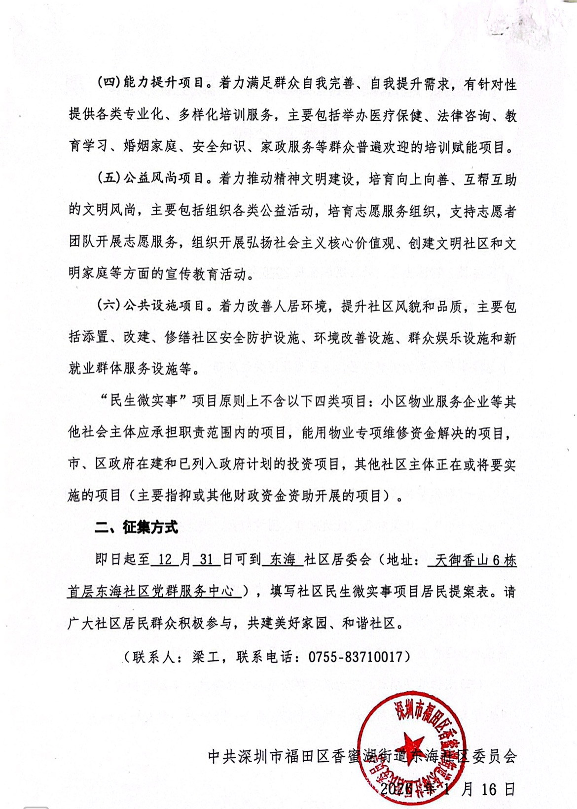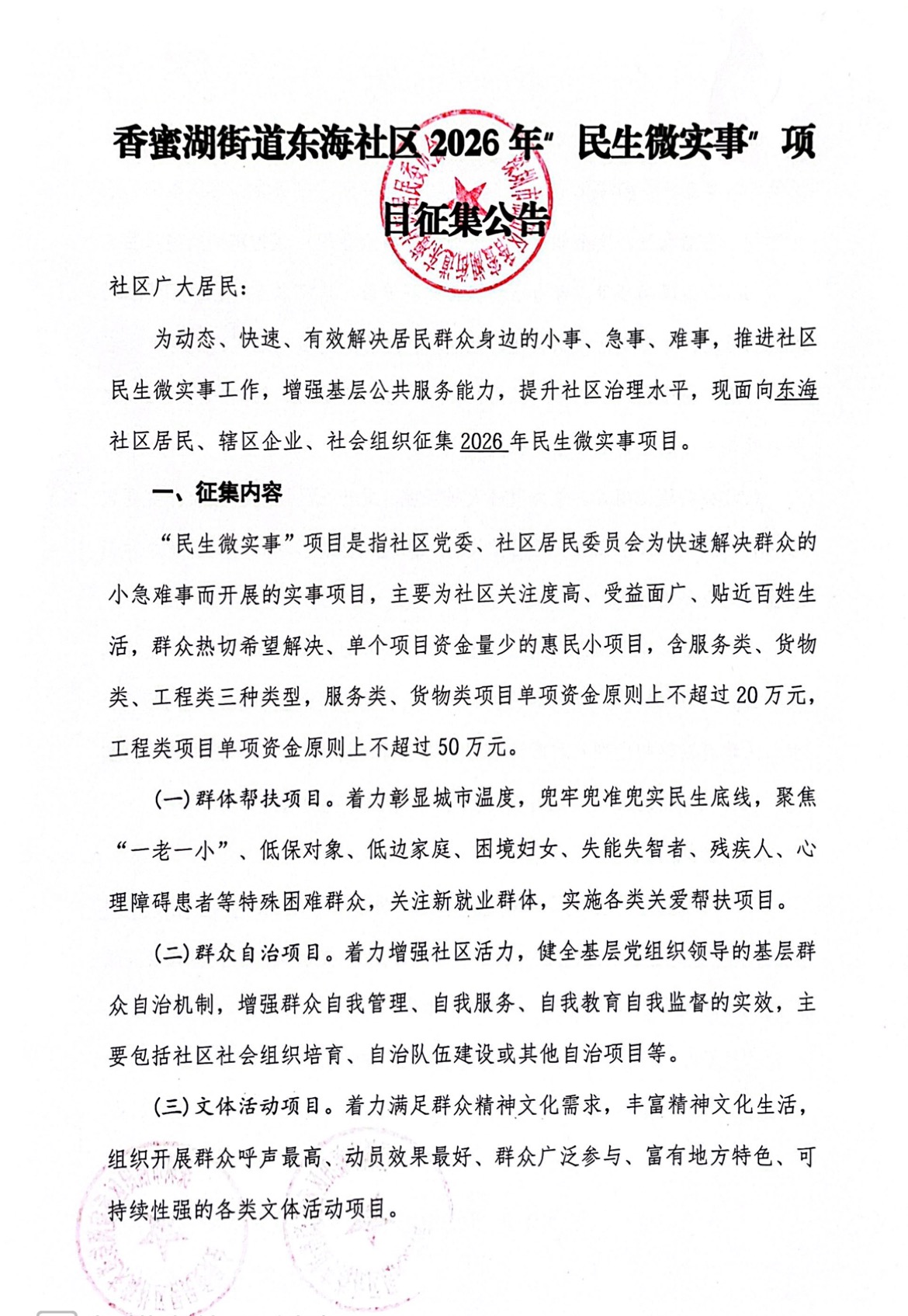 项目公示|福田区香蜜湖街道东海社区2026年“民生微实事”项目征集公告