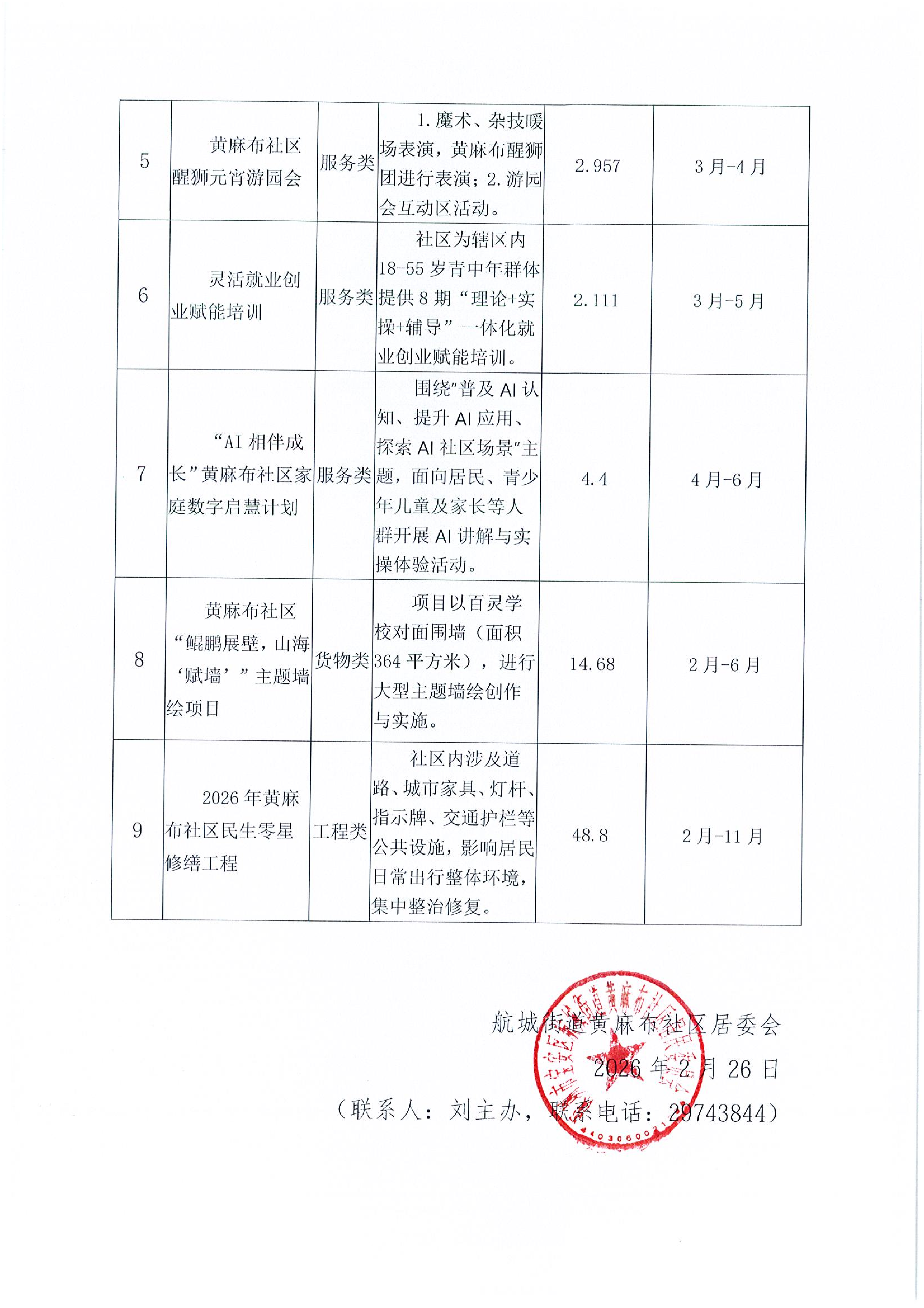 项目公示|宝安区航城街道黄麻布社区2026年“民生微实事”第一批确定实施项目公布