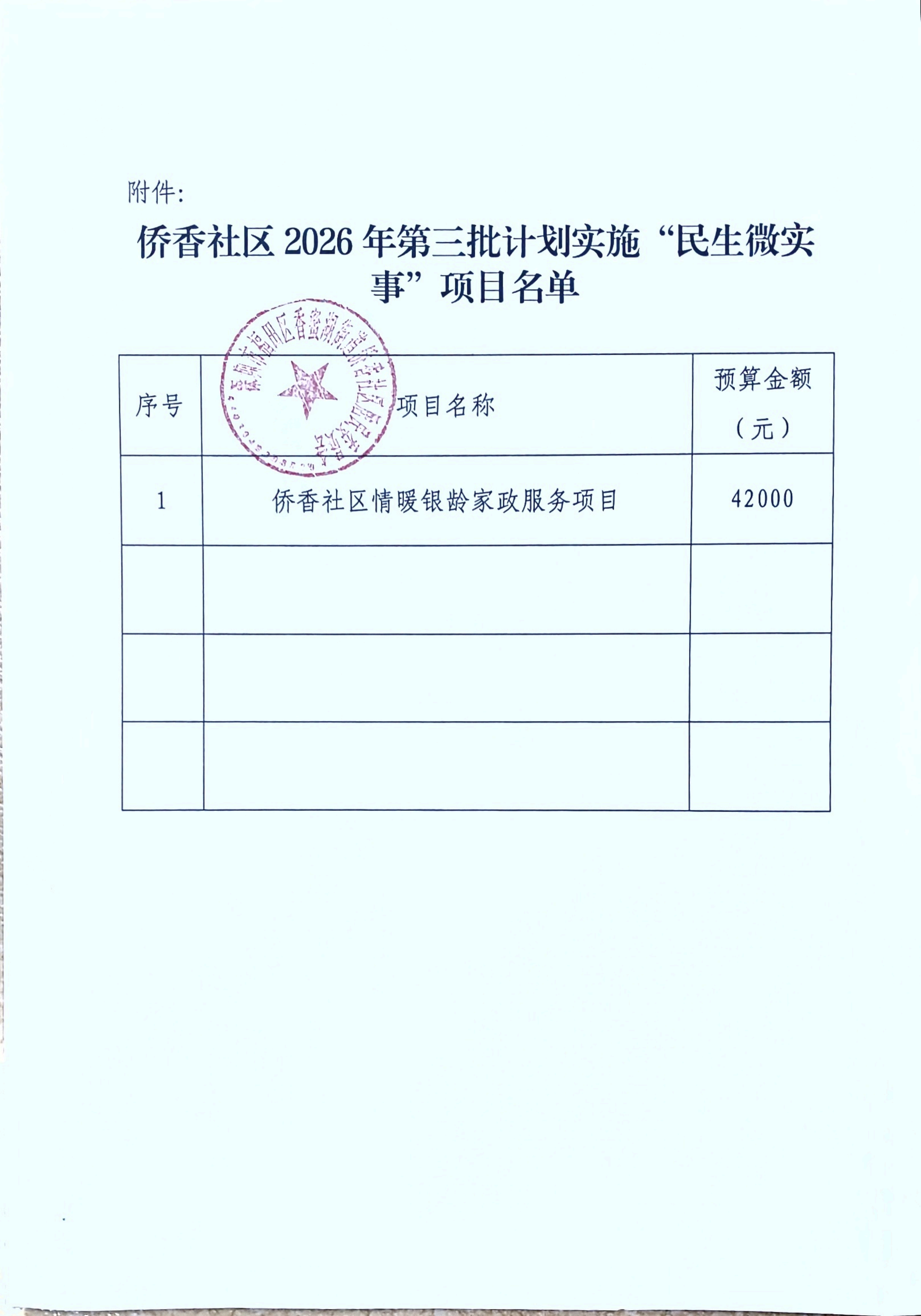 项目公示|福田区香蜜湖街道侨香社区2026年“民生微实事”计划实施项目名单的公告(第三批)