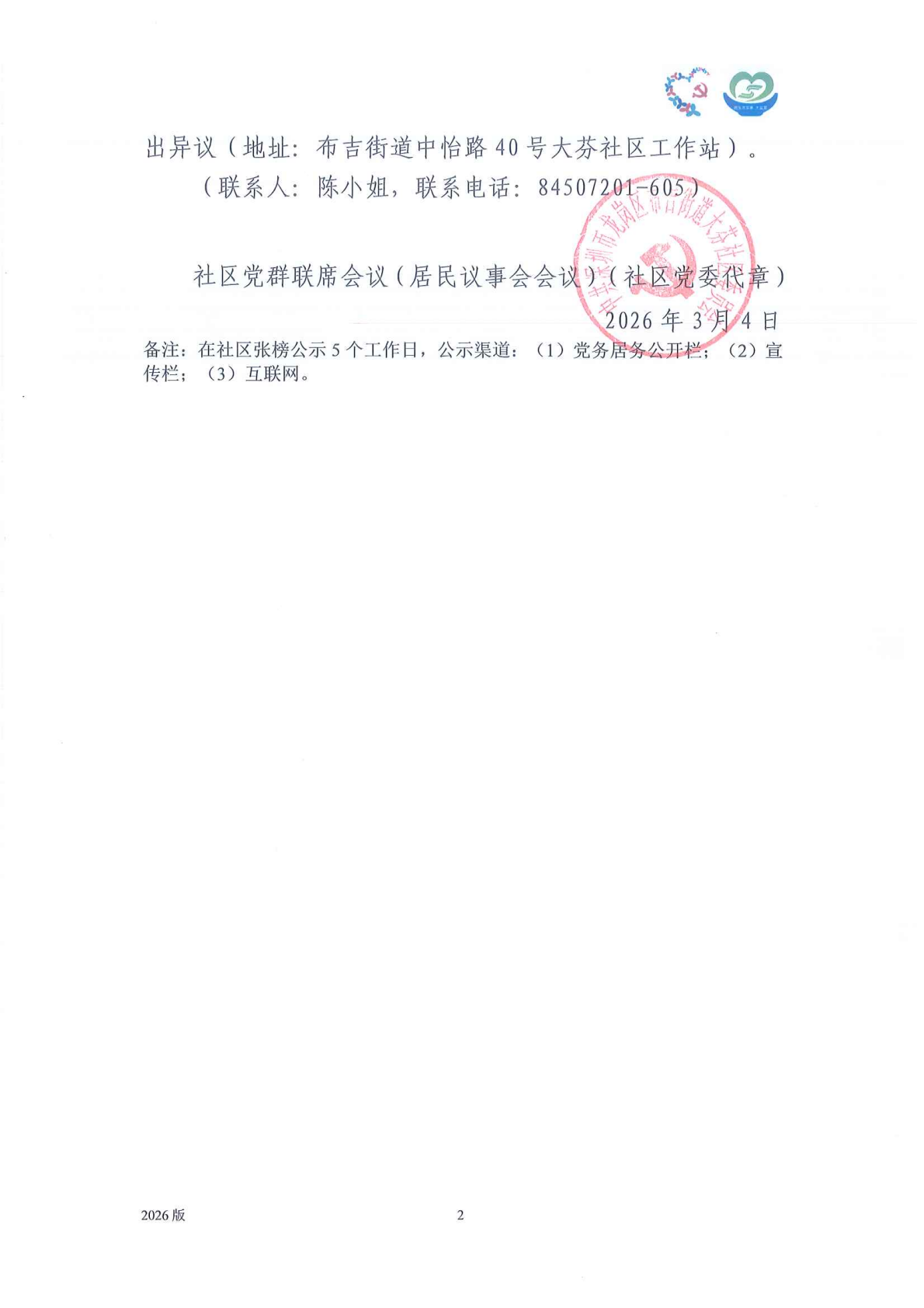 项目公示|龙岗区布吉街道大芬社区2026年“民生微实事·大盆菜”项目党群联席会议(居民议事会会议)结果公示