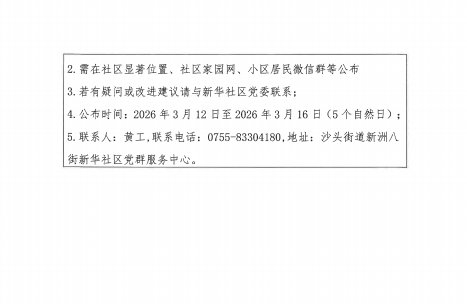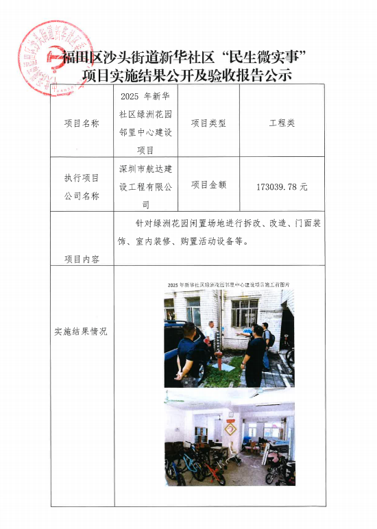 项目公示|福田区沙头街道新华社区“民生微实事”项目实施结果公开及验收报告公示