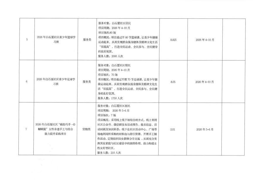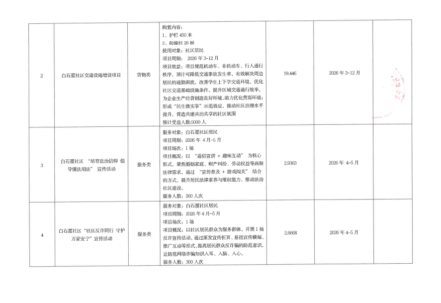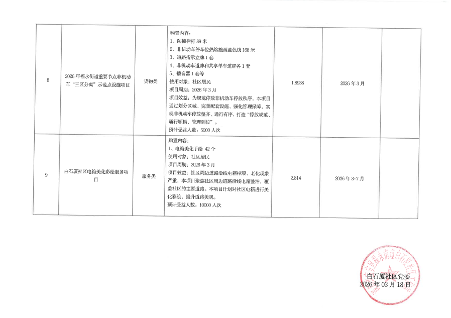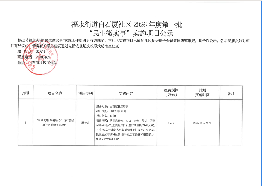 项目公示|宝安区福永街道白石厦社区2026年度第一批“民生微实事”实施项目公示