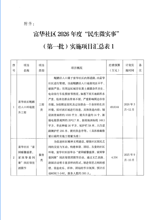 项目公示|宝安区西乡街道富华社区2026年度“民生微实事”(第一批)实施项目公布