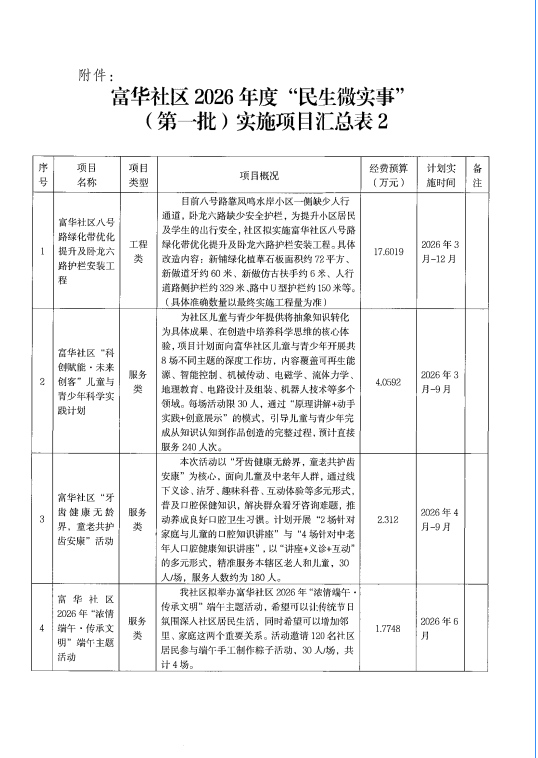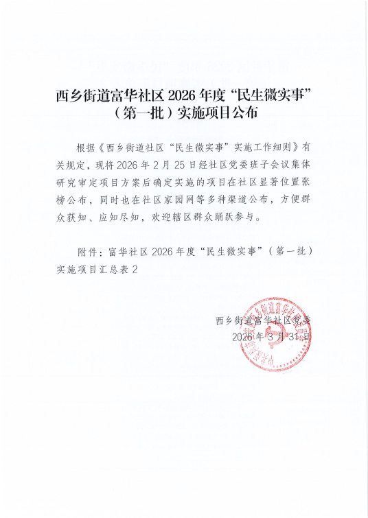 项目公示|宝安区西乡街道富华社区2026年度“民生微实事”(第一批)实施项目公布