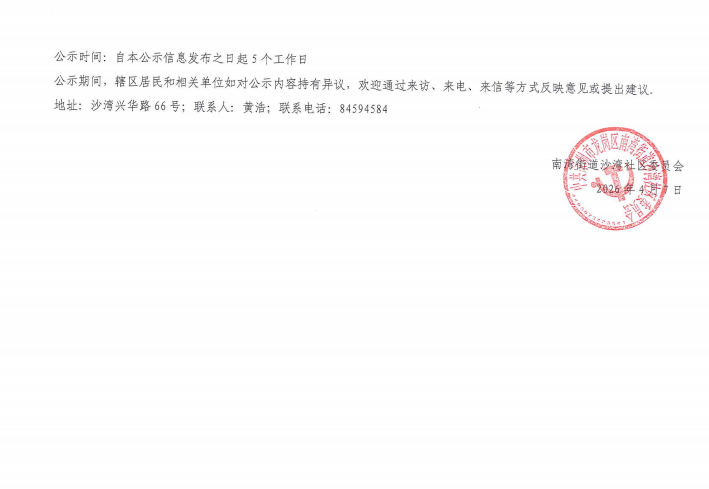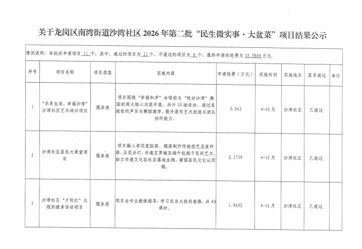 项目公示|龙岗区南湾街道沙湾社区2026年第二批“民生微实事·大盆菜”项目结果公示