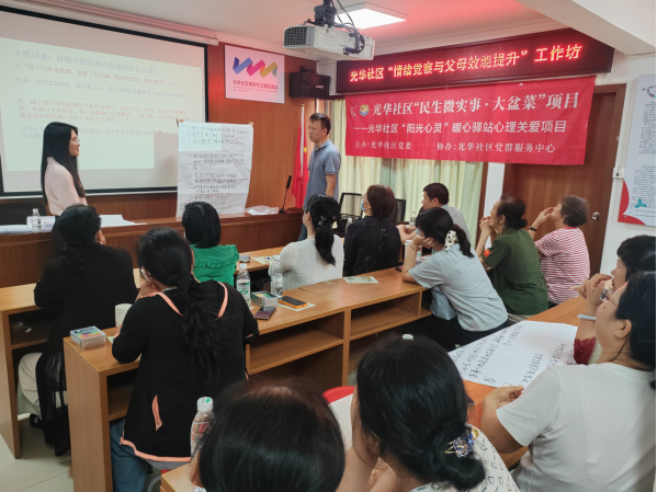 为进一步提升辖区家长家庭教育能力,帮助父母更好觉察自身情绪、掌握科学亲子沟通技巧,在光华社区党委的指导下,充分发挥党建引领作用,光华社区“阳光心灵”暖心驿站心理关爱项目,于2026年4月11日14:30-16:00在光华社区工作站二楼202室,成功举办“情绪觉察与父母效能提升”工作坊,吸引26名有家庭教育需求的社区家长踊跃参与。