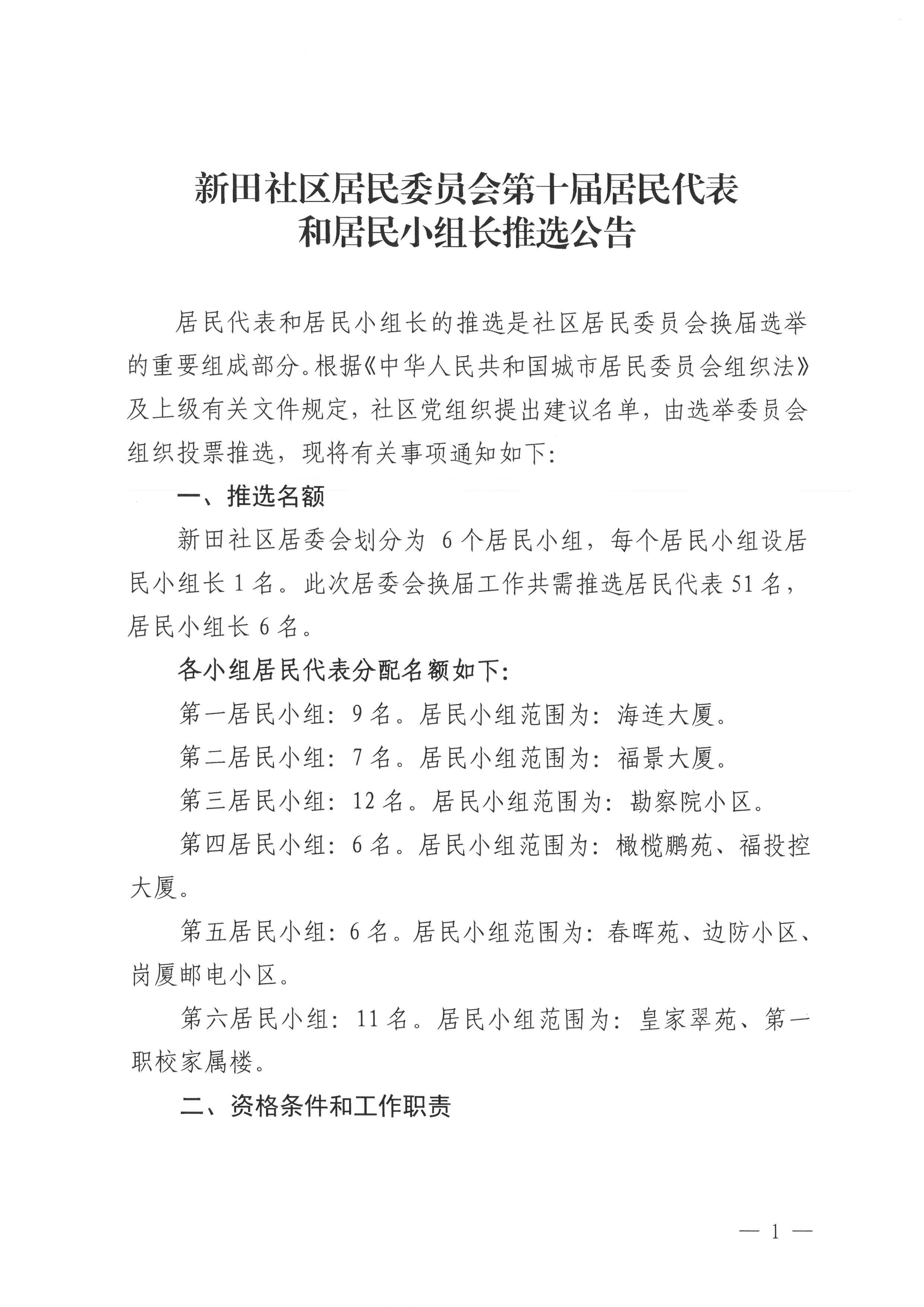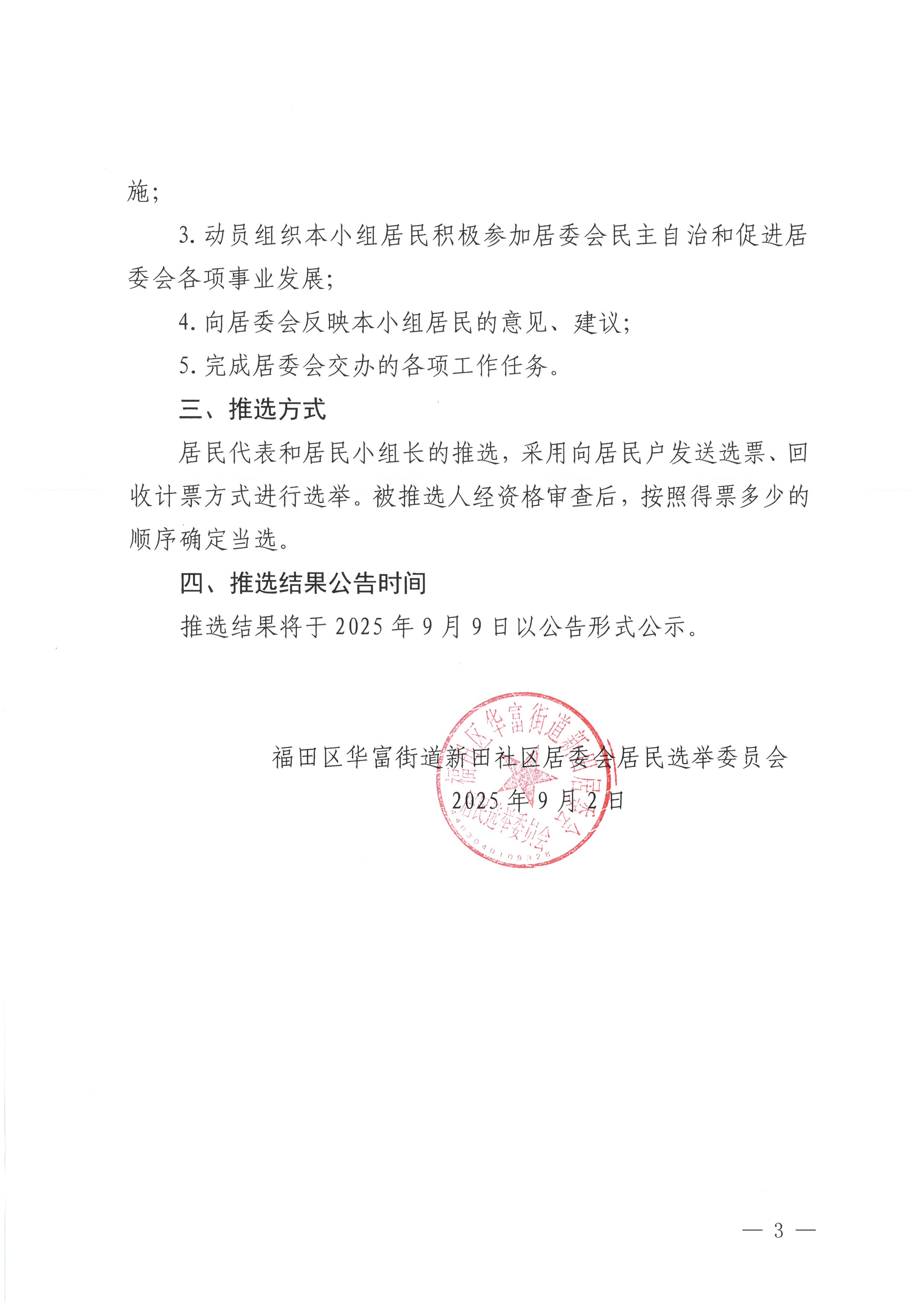 自治活动|福田区华富街道新田社区居民委员会第十届居民代表和居民小组长推选公告