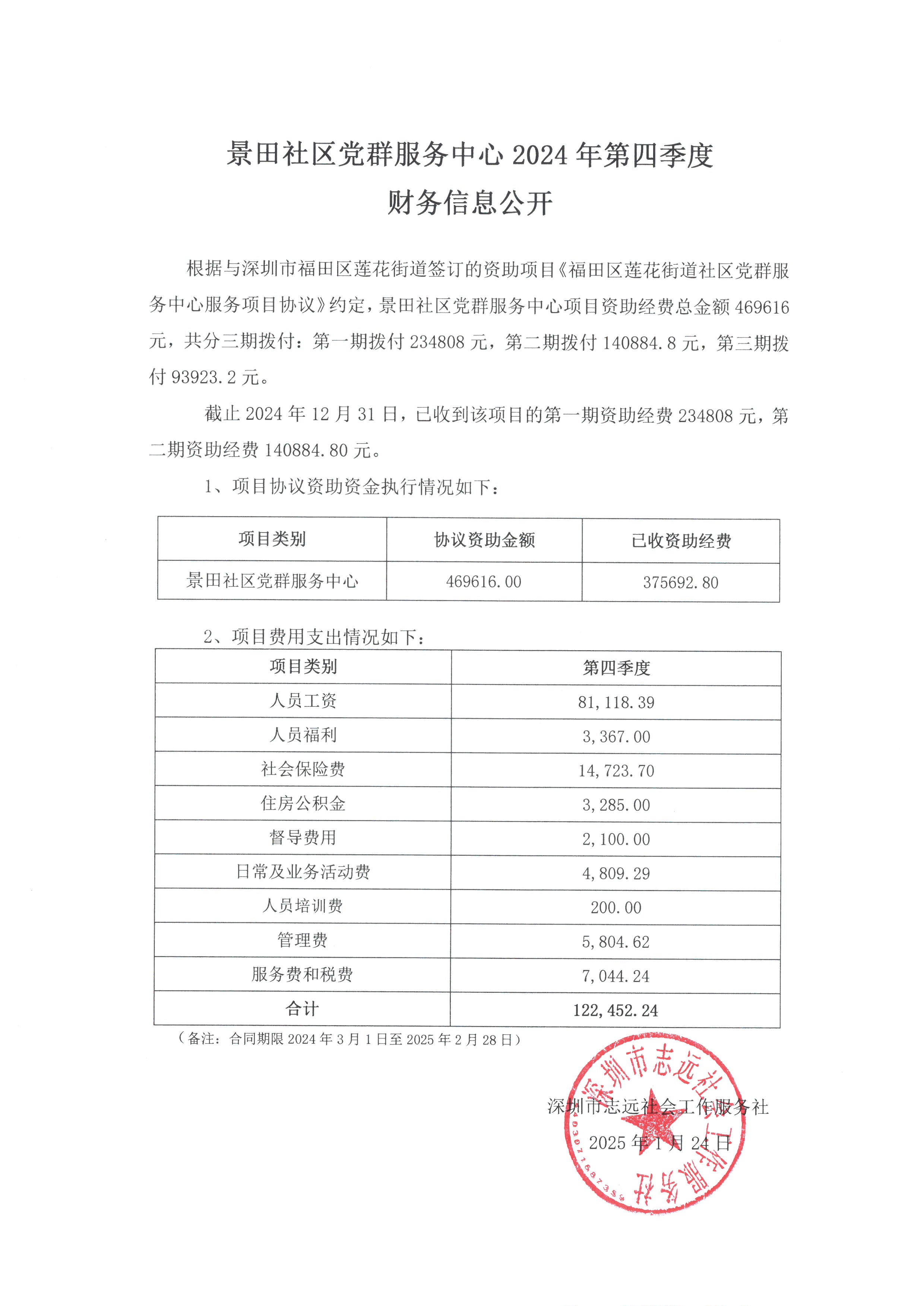 福田区景田社区党群服务中心2024年第四季度项目经费公示表(20240301—20250228)