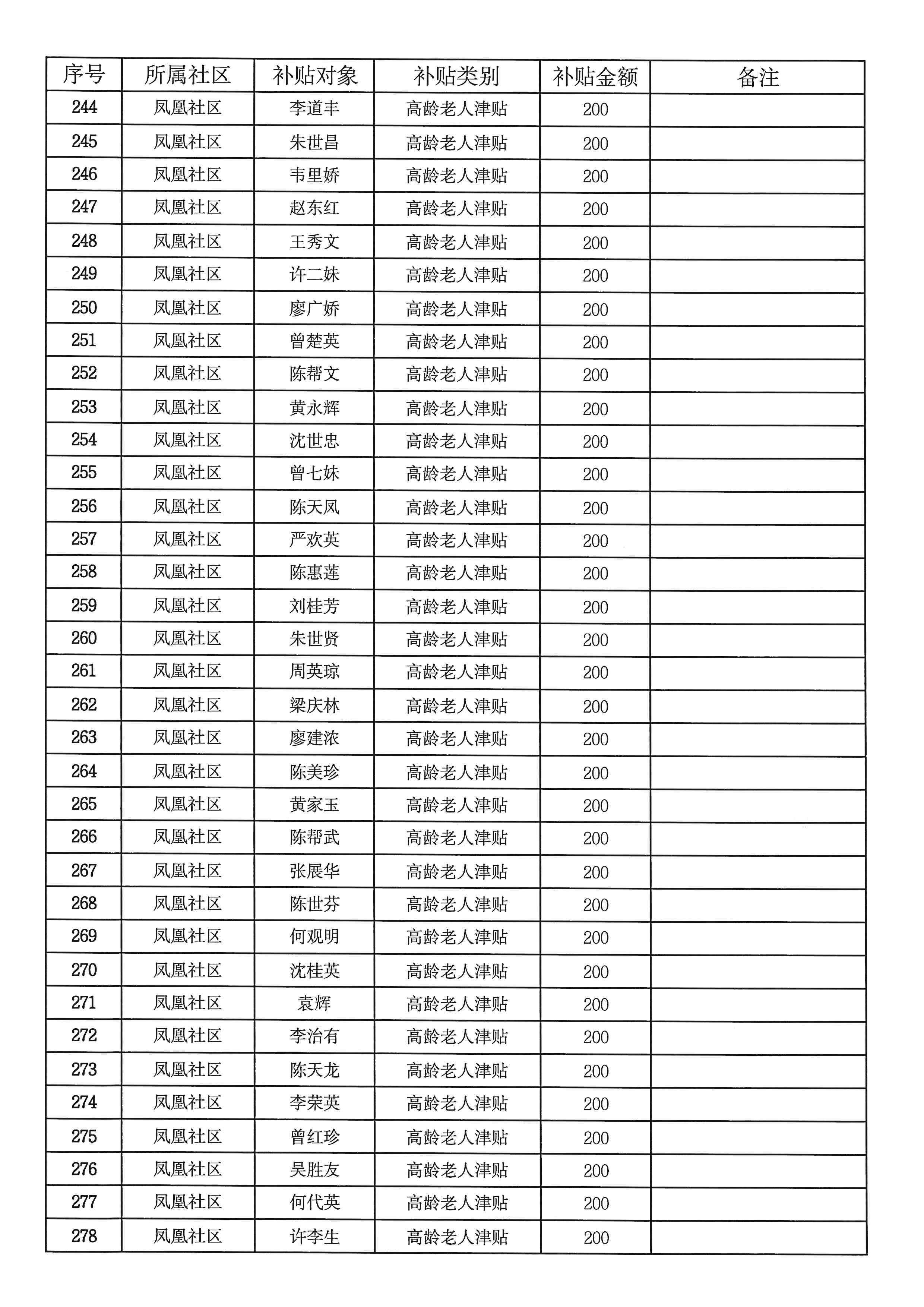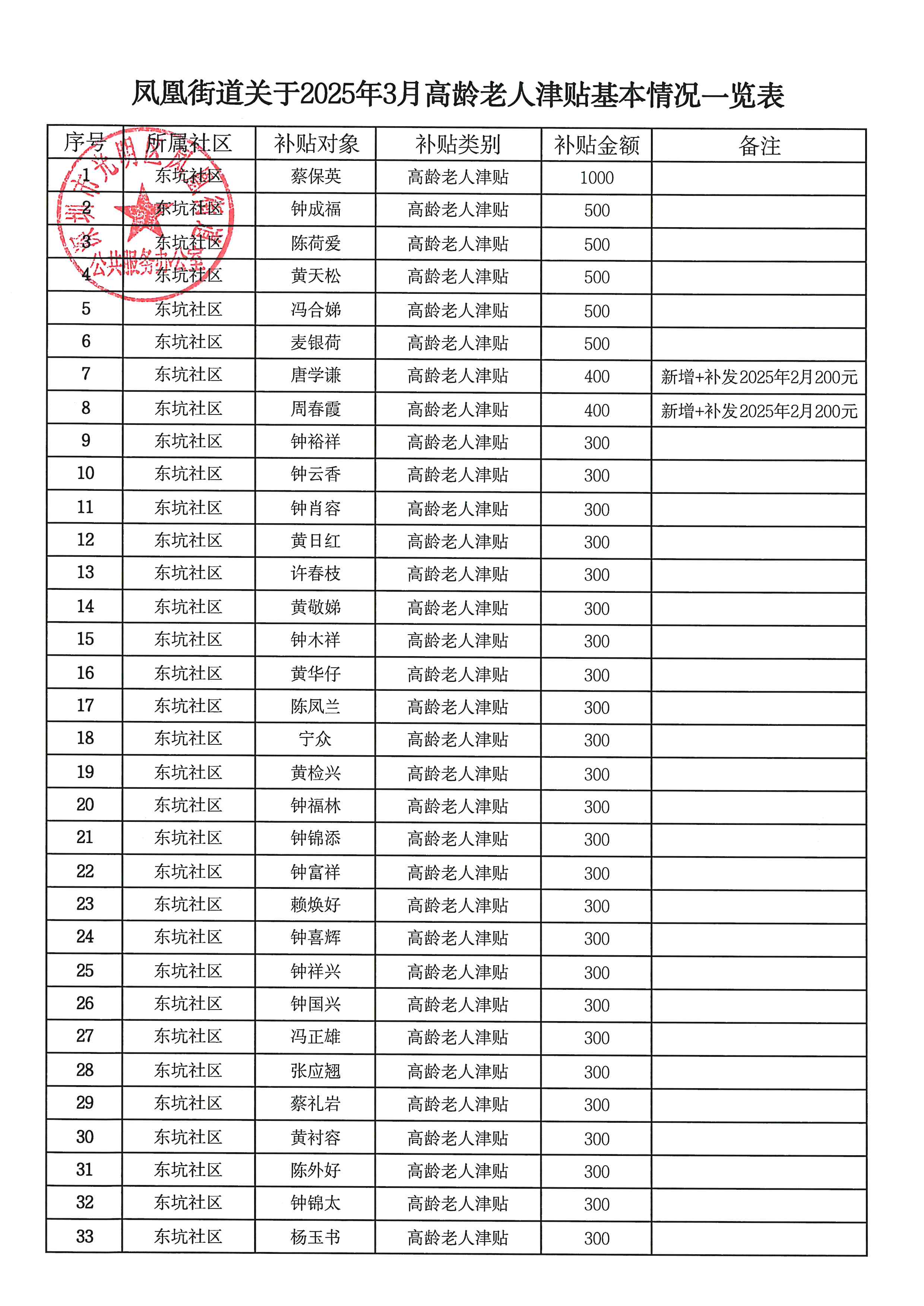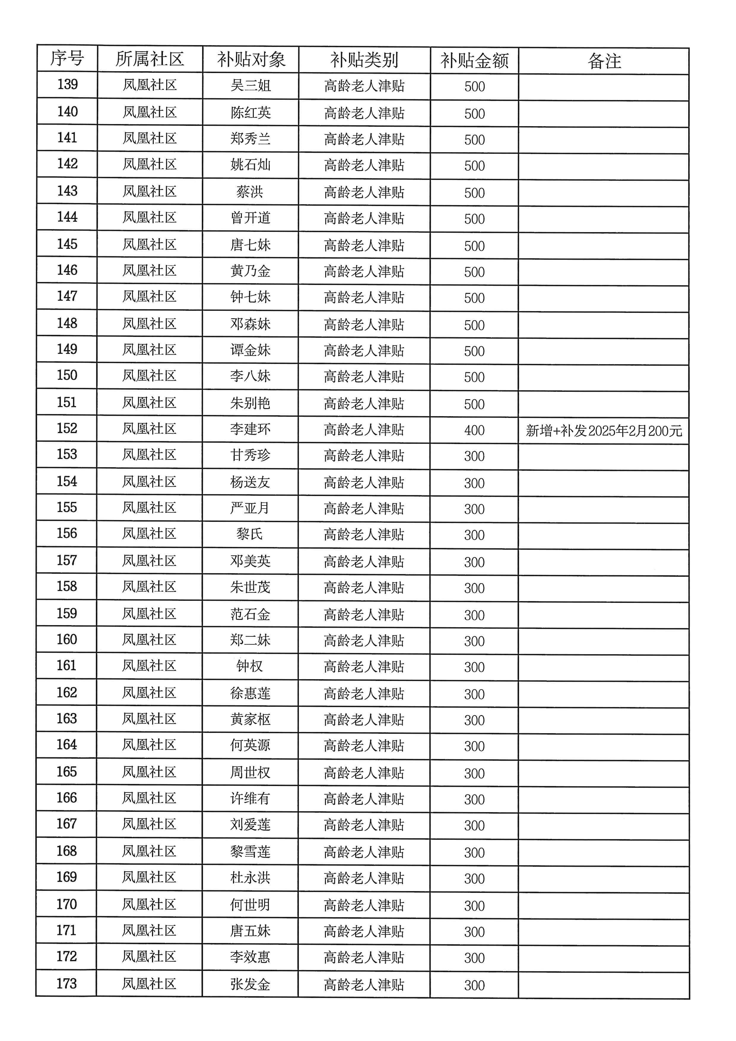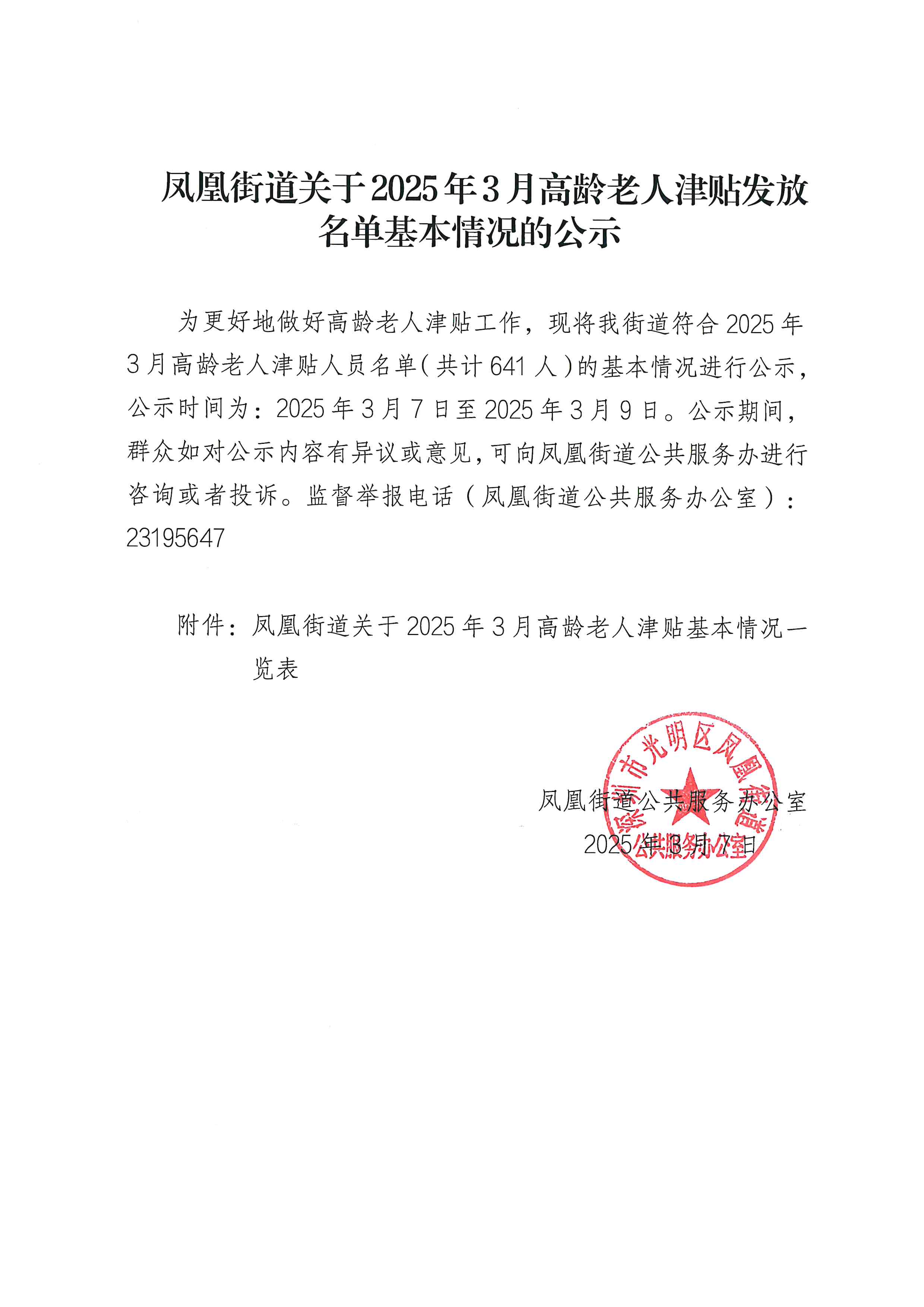 凤凰街道关于2025年3月高龄老人津贴发放名单基本情况的公示