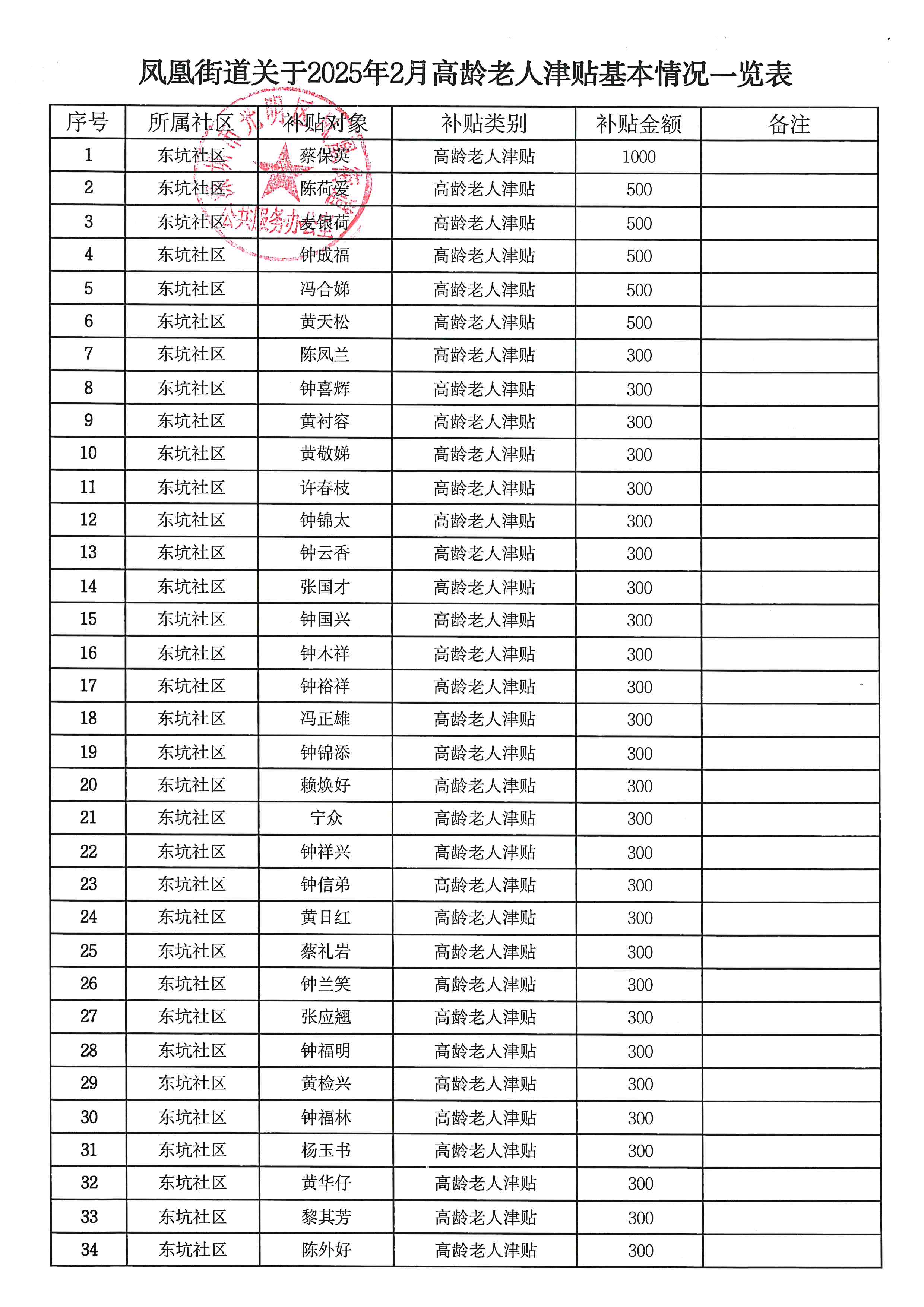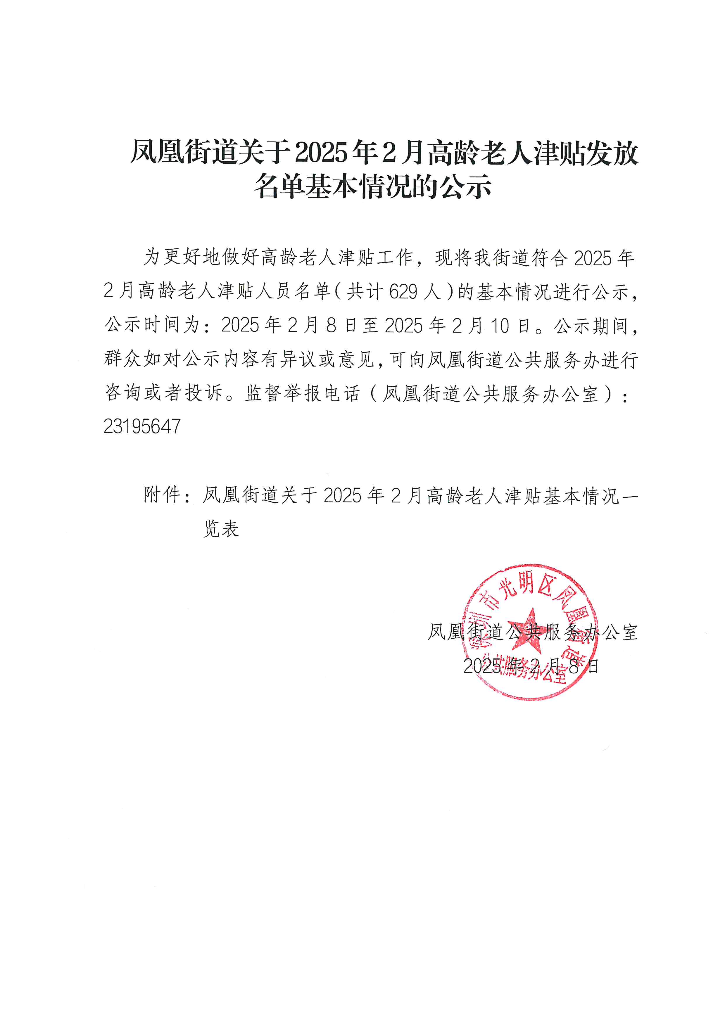 凤凰街道关于2025年2月高龄老人津贴发放名单基本情况的公示