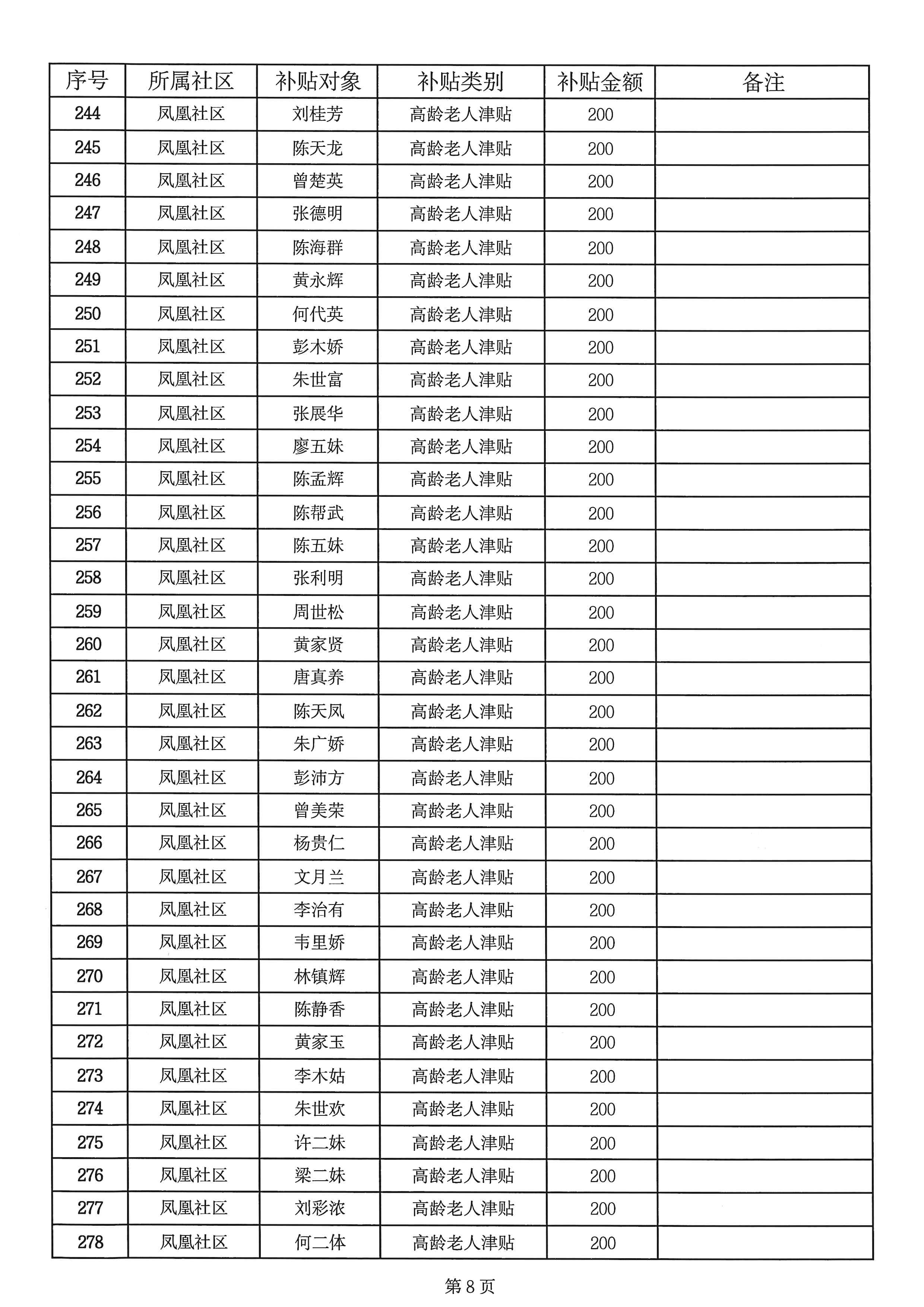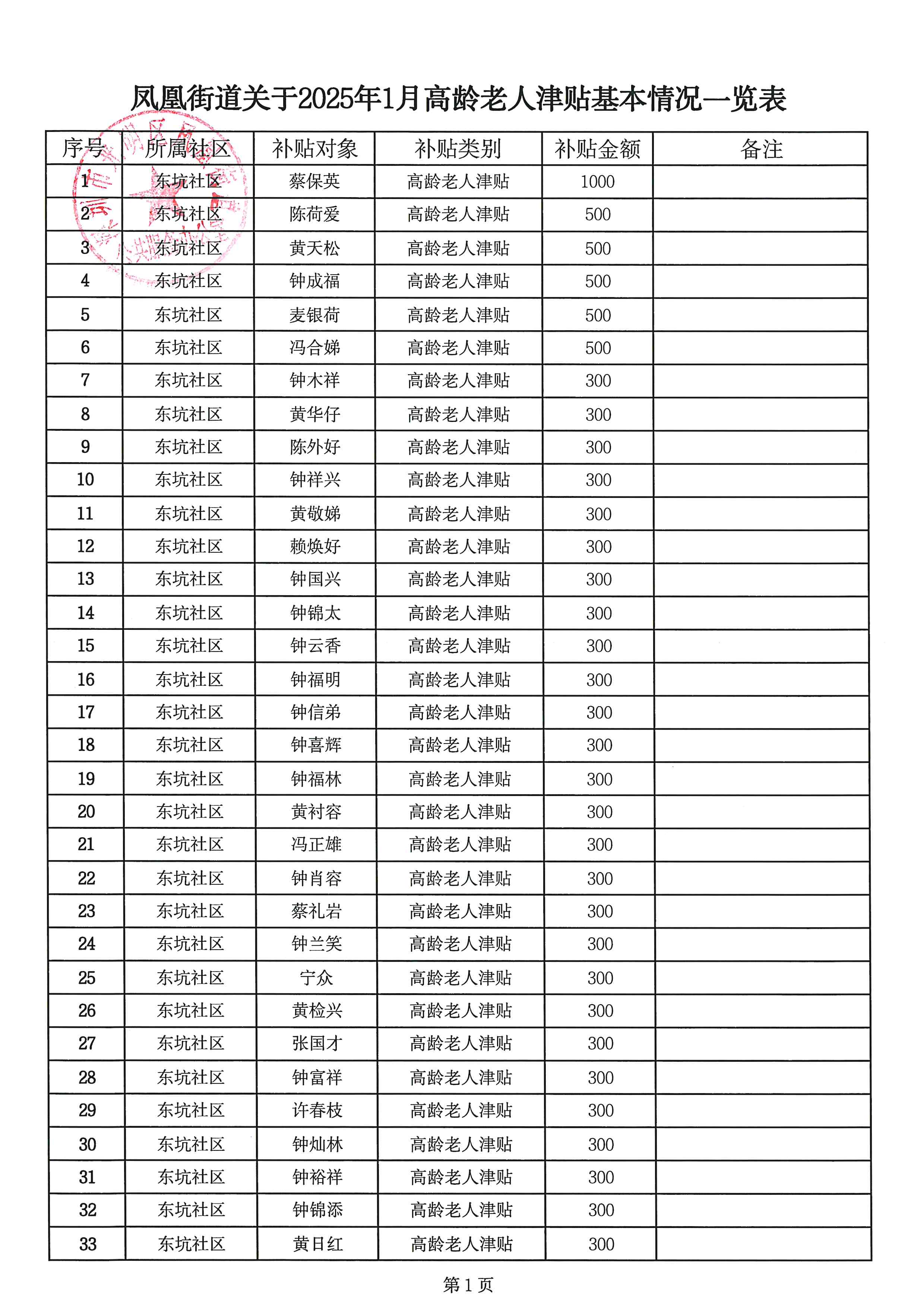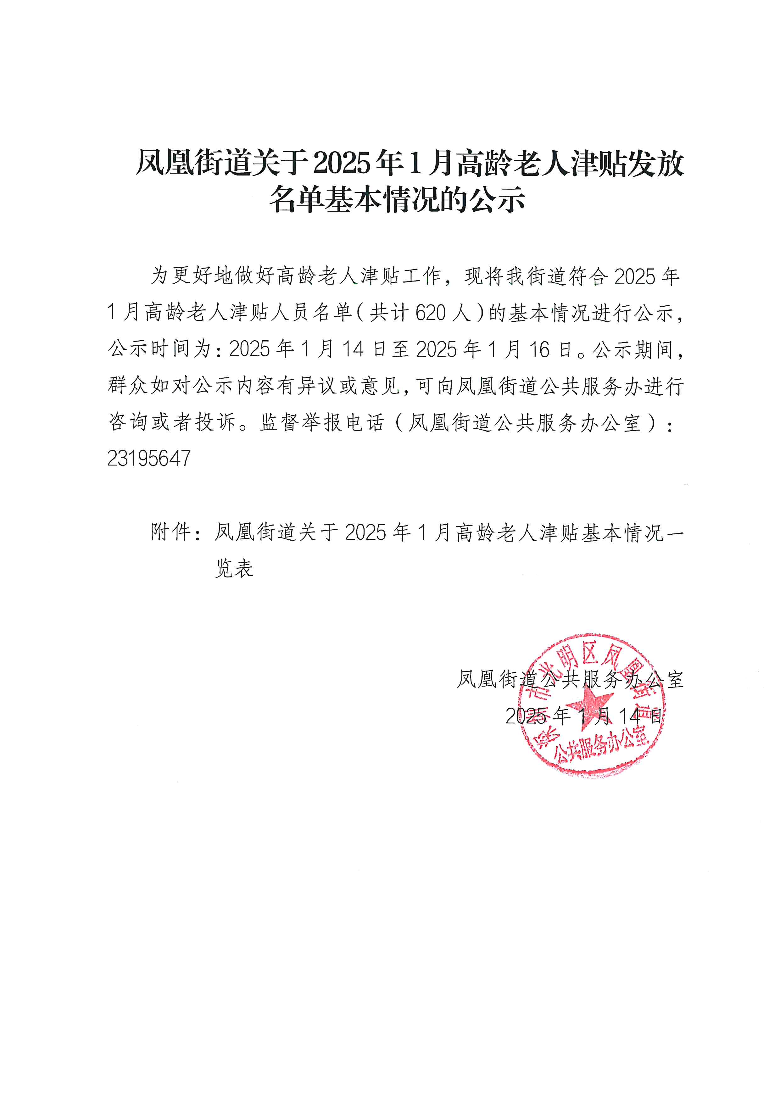 凤凰街道关于2025年1月高龄老人津贴发放名单基本情况的公示