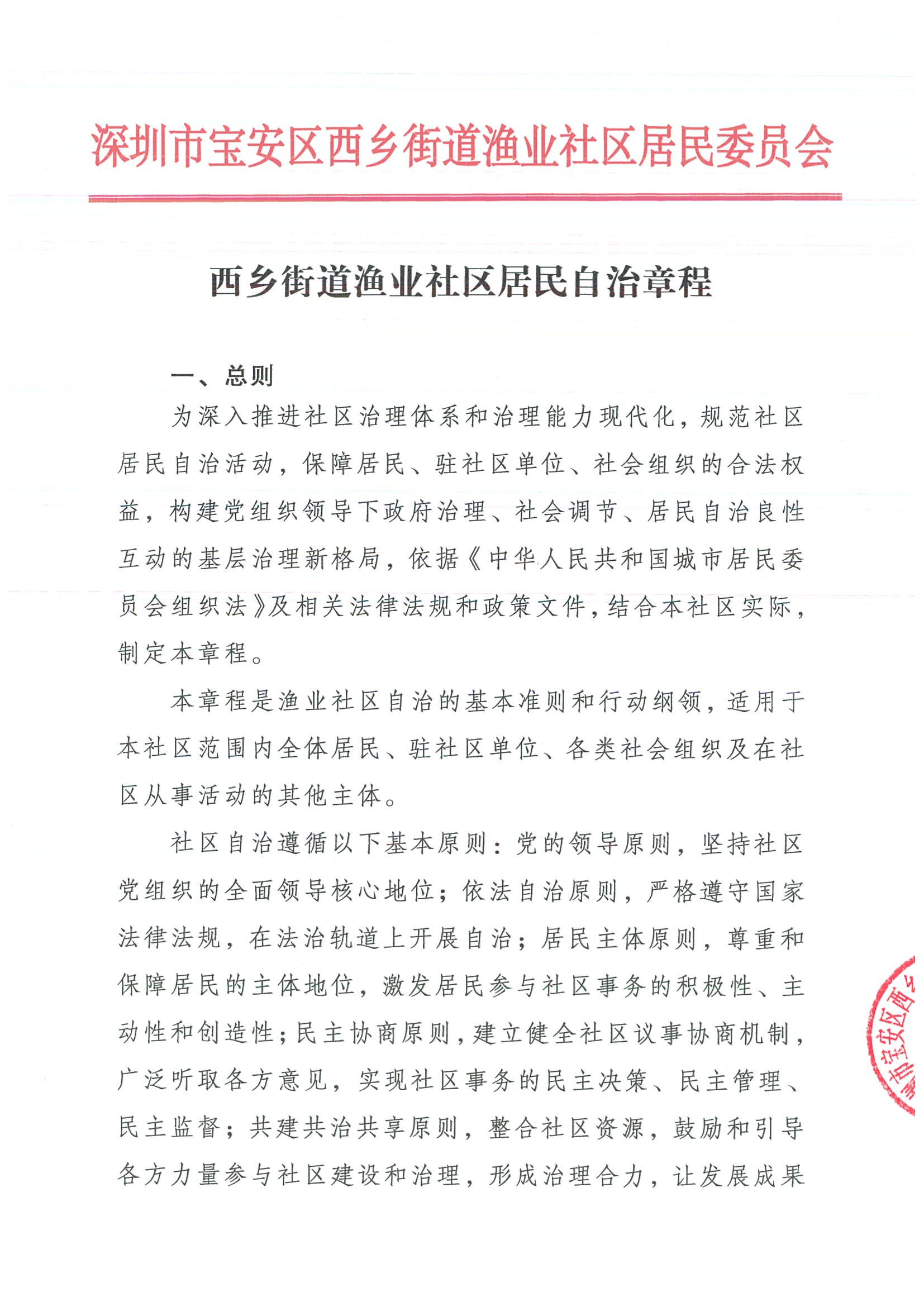 自治活动|宝安区西乡街道渔业社区:渔业社区居民自治章程送审稿公示