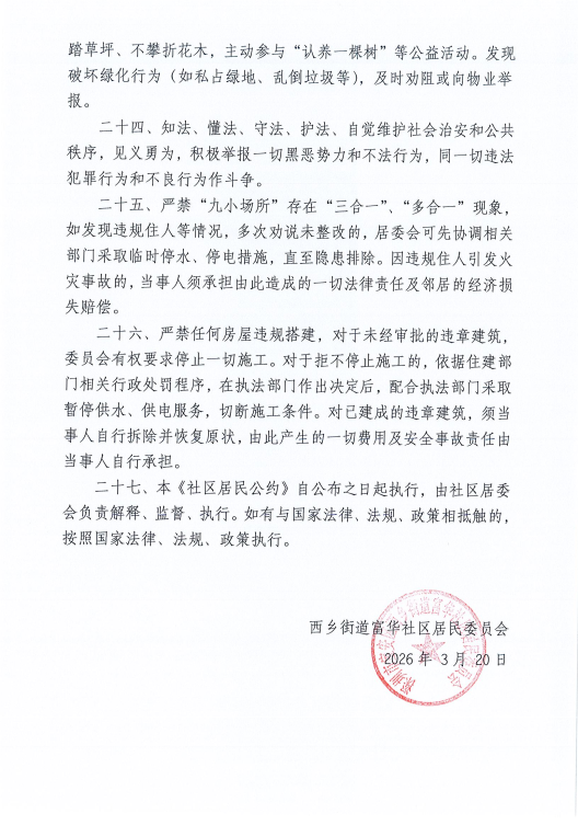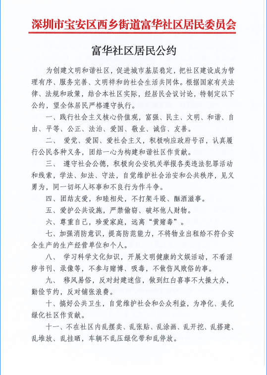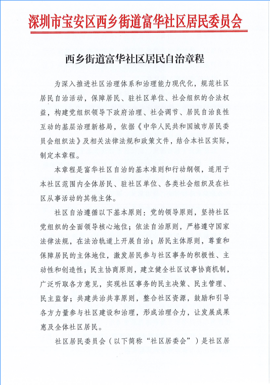 自治活动|宝安区西乡街道富华社区:富华社区居民公约、富华社区居民自治章程送审稿公示